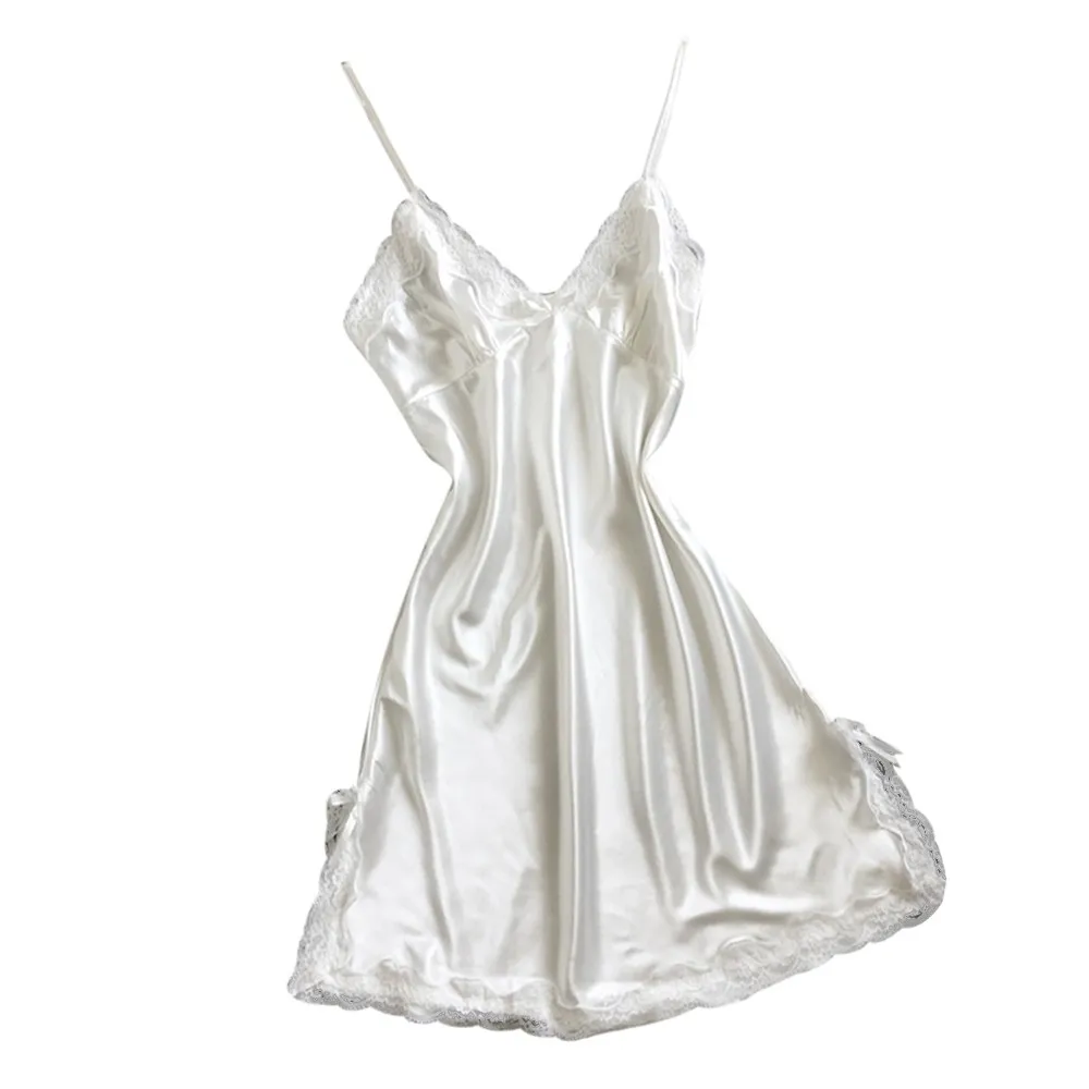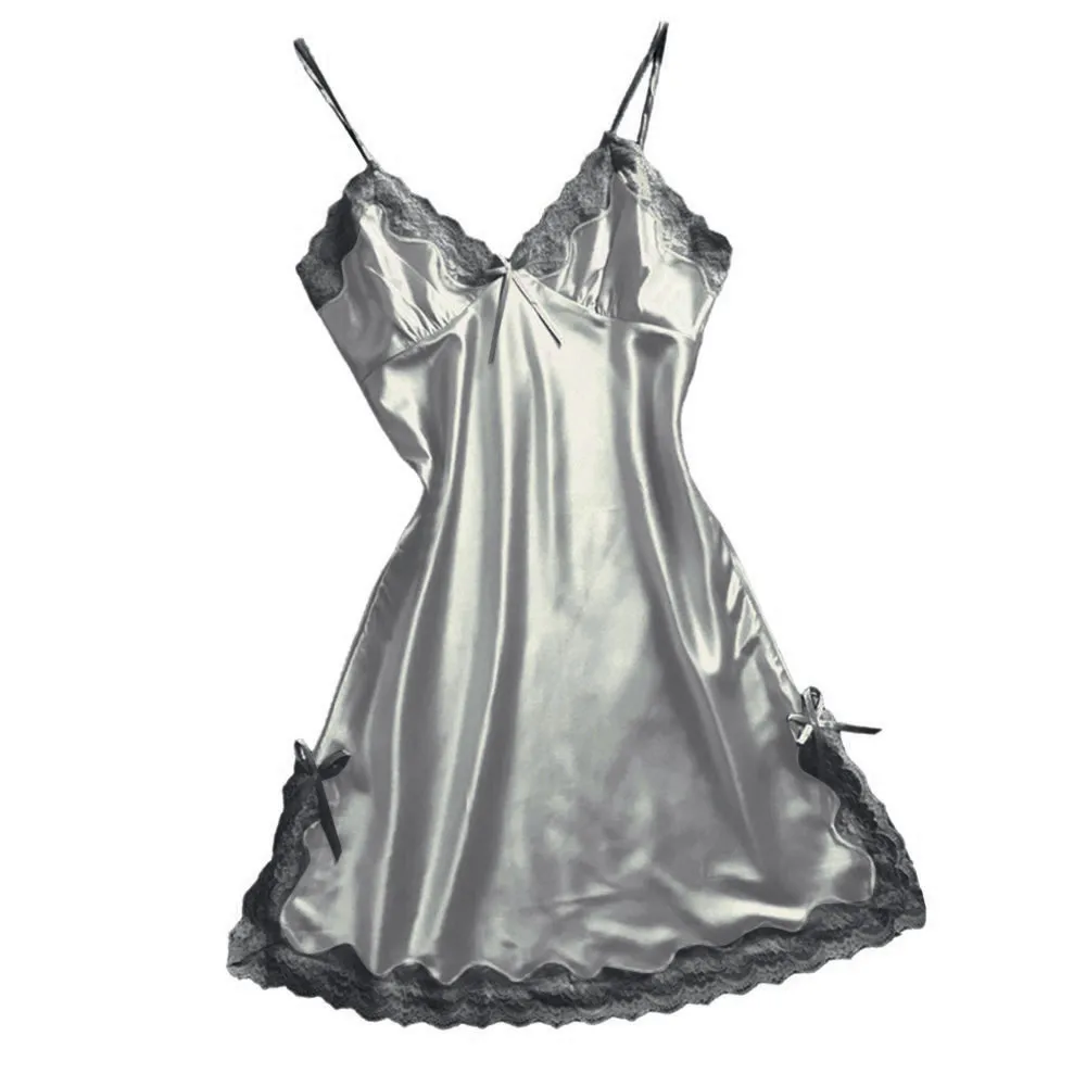 Атласная ночная рубашка, женское сексуальное кружевное белье с бант...