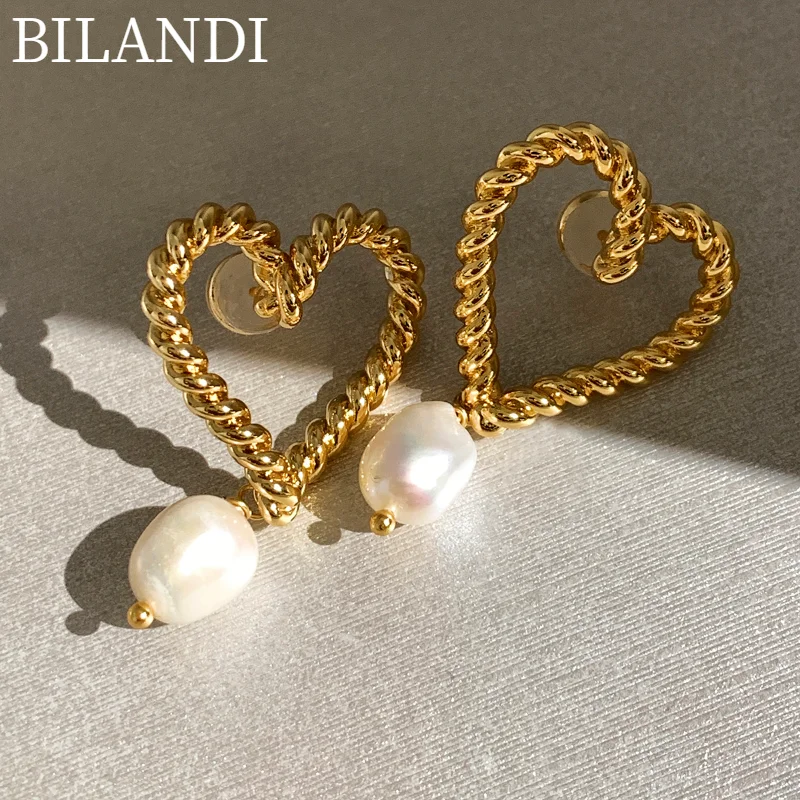 Милые ювелирные изделия Bilandi S925, серьги в форме сердца, красивые дизайнерские серьги-подвески с пресноводным жемчугом, аксессуары для женщин