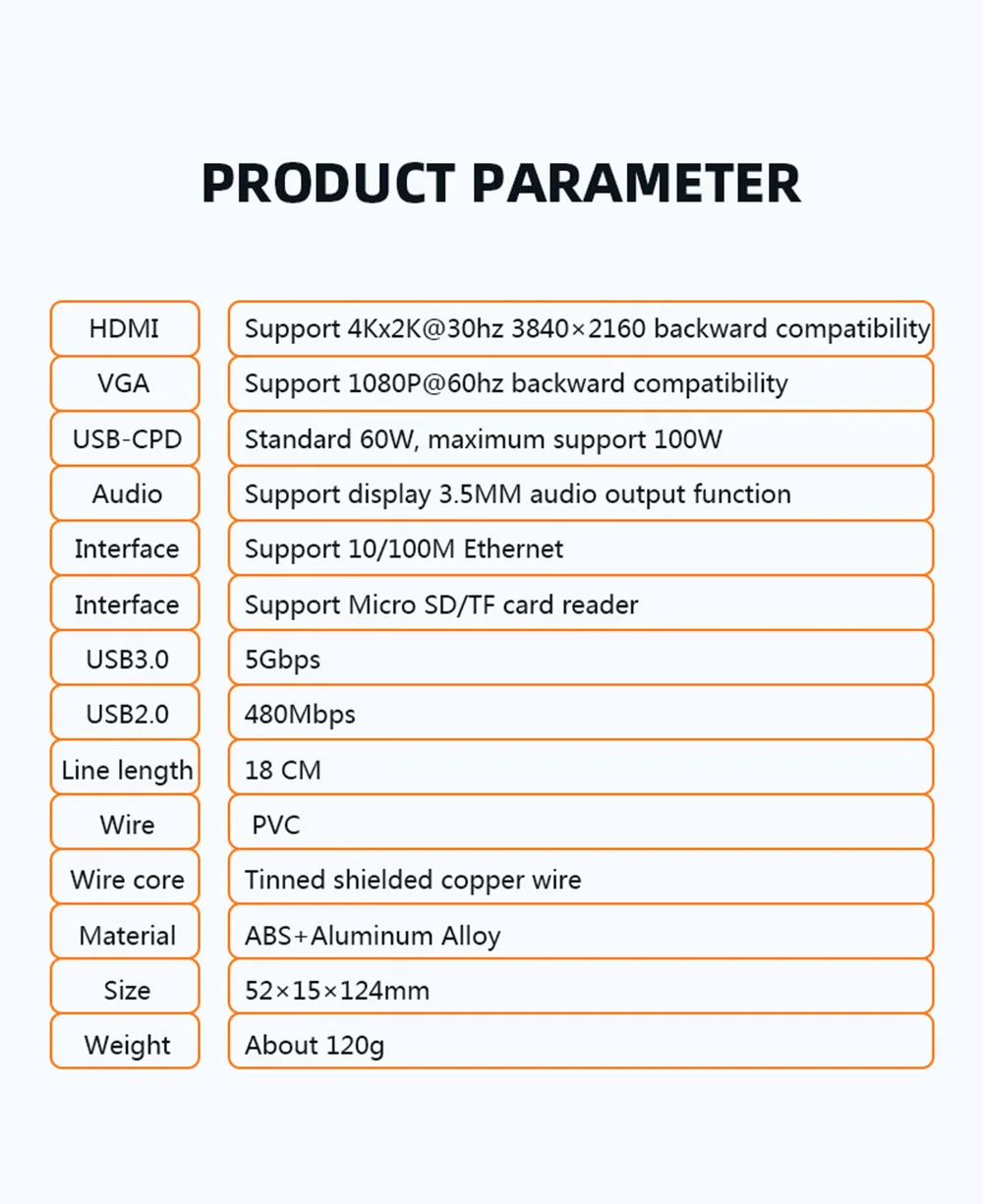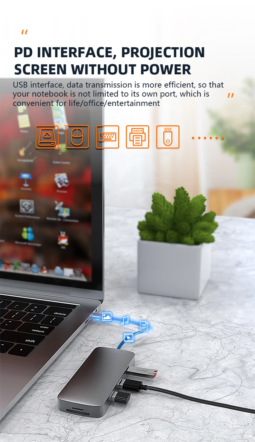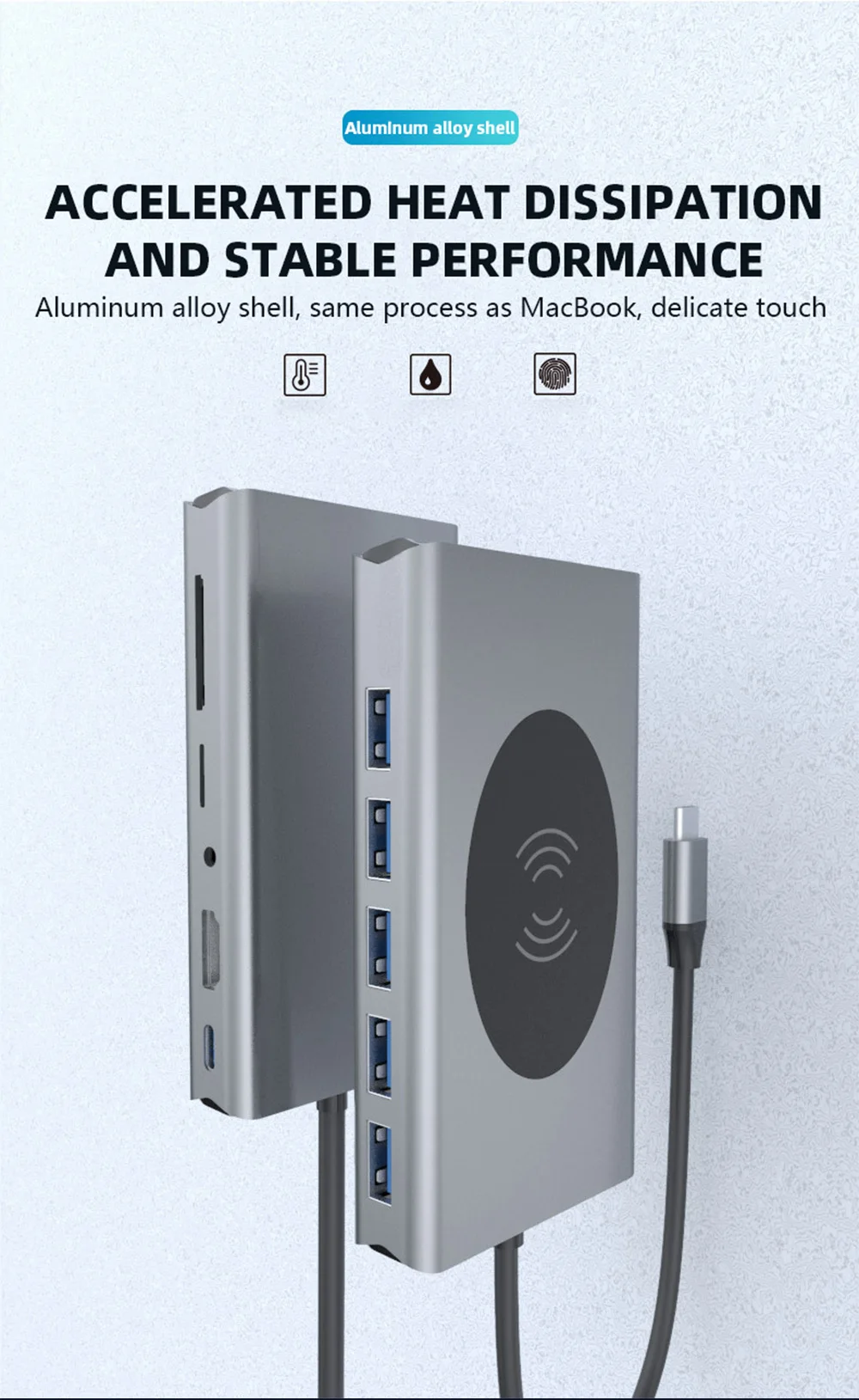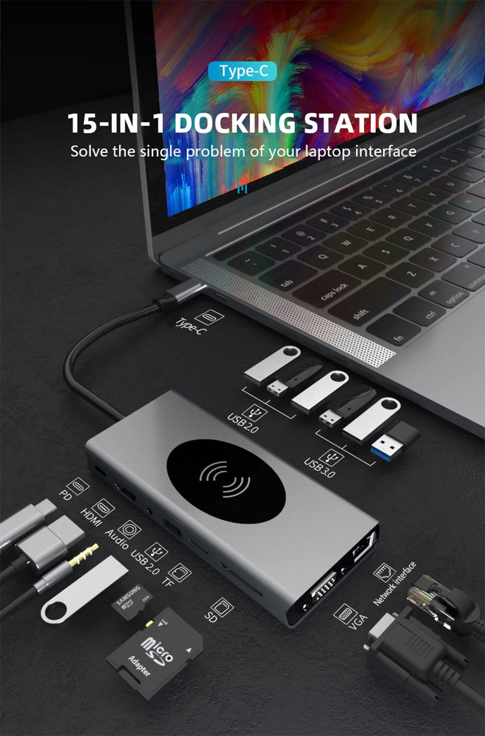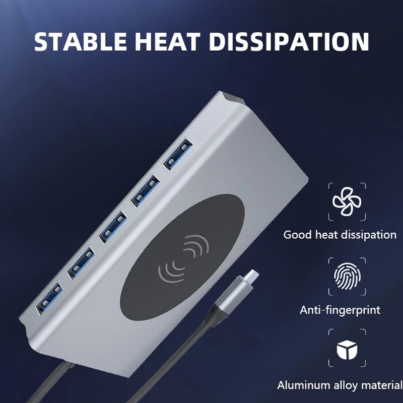 Feature 1USB-C to HDMI/Card reader/RJ45/PD Adapter/Wireless charging
