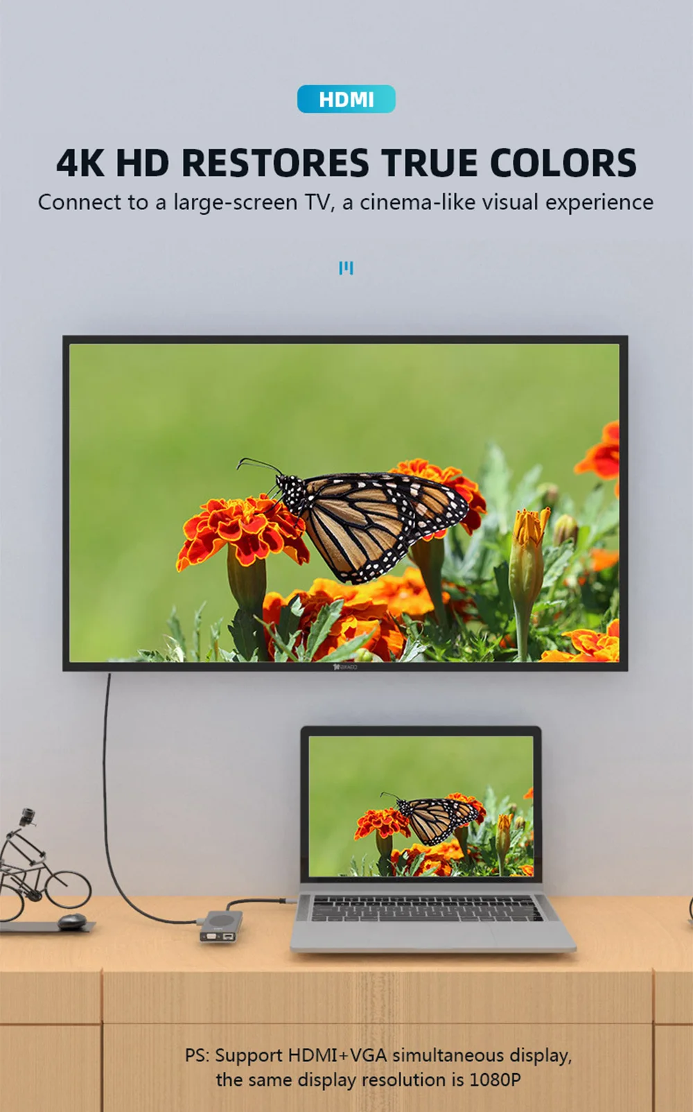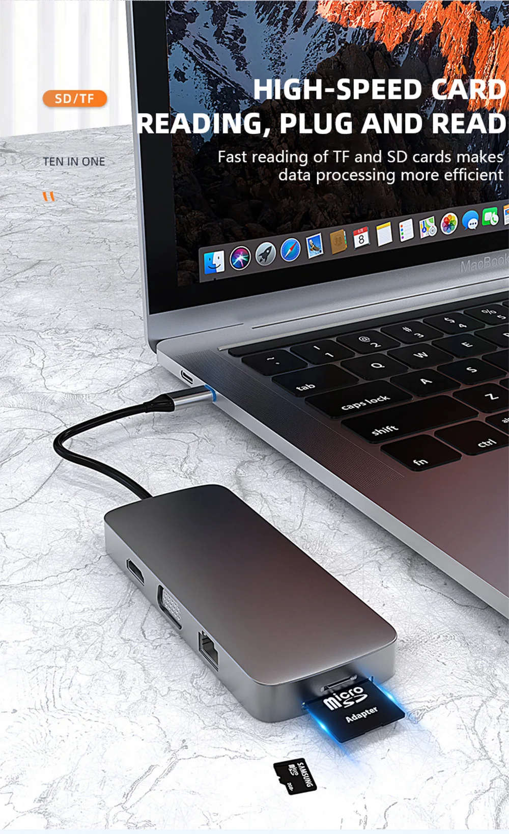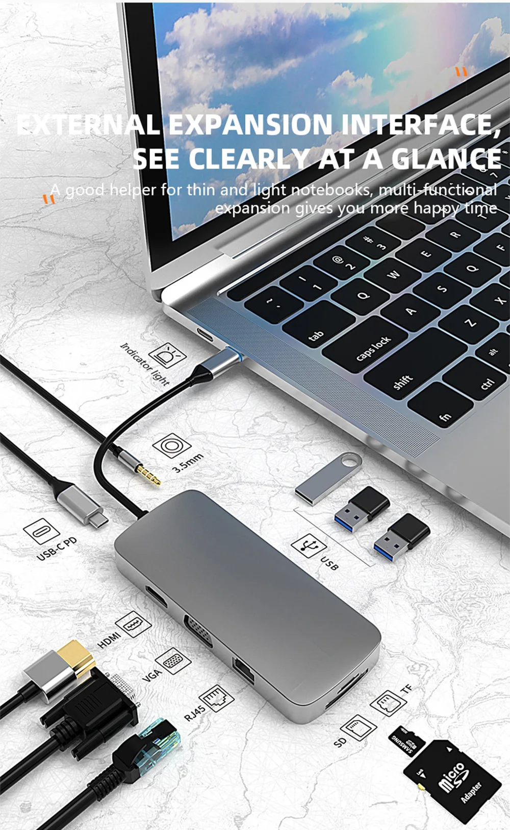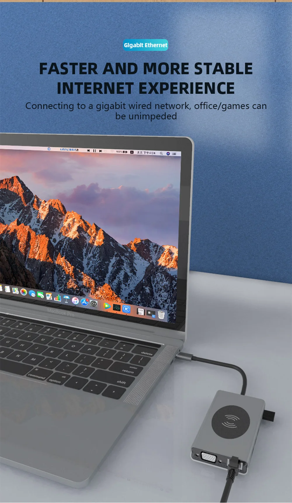 Feature 1USB-C to HDMI/Card reader/RJ45/PD Adapter/Wireless charging