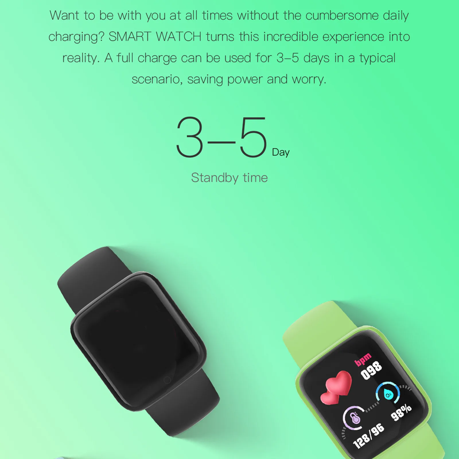 D20S/Y68S 1,44 дюймов Смарт-часы Bluetooth фитнес-браслет для Android Ios