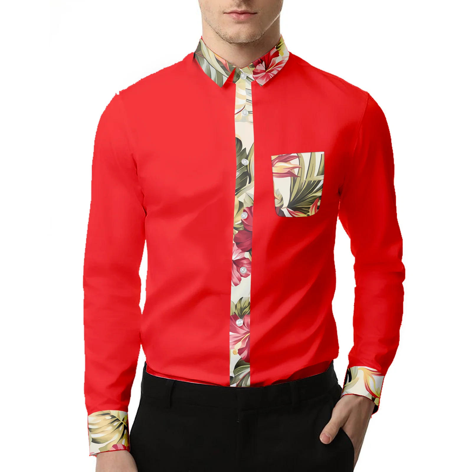 Мужская Повседневная рубашка, красная рубашка в стиле барокко, с дл...