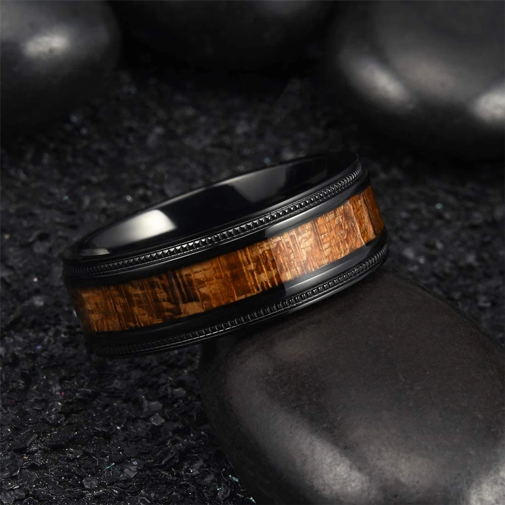 Модное черное вольфрамовое обручальное кольцо 8 мм для мужчин и женщин, обручальные кольца Koa с древесной инкрустацией из стали, ювелирные изделия в стиле панк для мужчин, подарки на годовщину