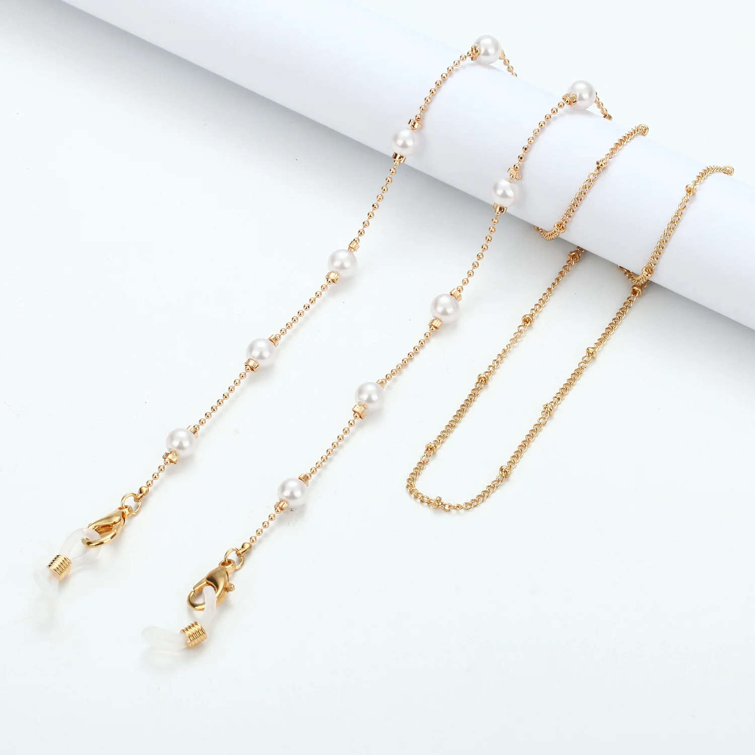 Цепочка для очков, металлическая, с жемчугом и ремешком для маски, ...