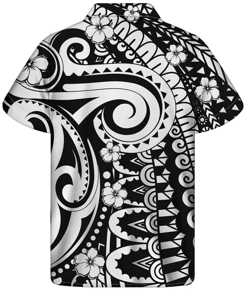 Винтажные полинезийские мужские рубашки с коротким рукавом и цветоч...