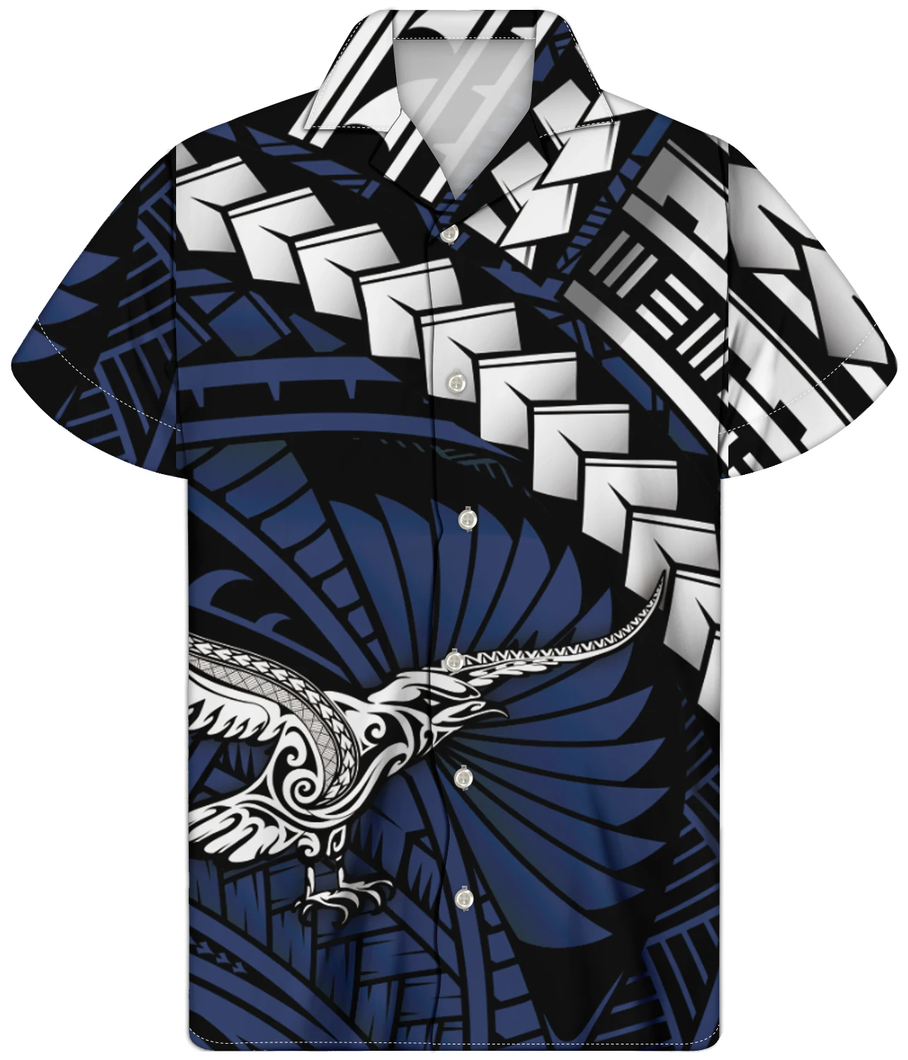 Оптовая цена на заказ полинезийский Племенной синий фон с принтом орла мужская модель мужская одежда Роскошные Дизайнерские рубашки