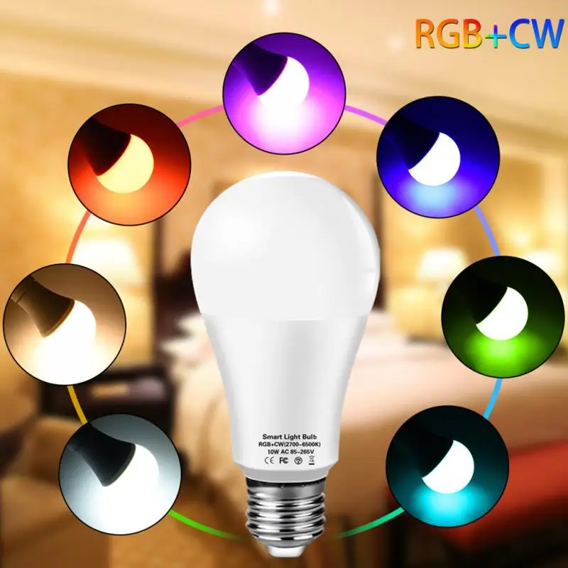 Умная лампа Светодиодная Tuya E27 RGB с поддержкой Wi-Fi, 121518 Вт