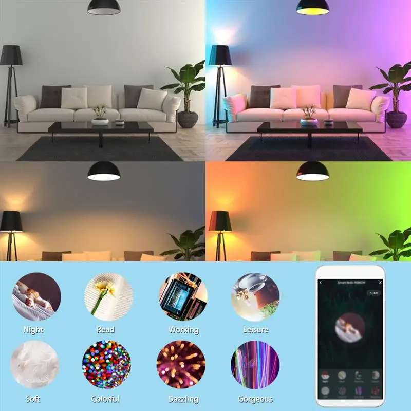 121518 Вт WiFi умный светильник лампа 27 LED RGB лампа работает с AlexaGoogle Home 85-265 в RGB диммируемая Функция таймера волшебная лампа