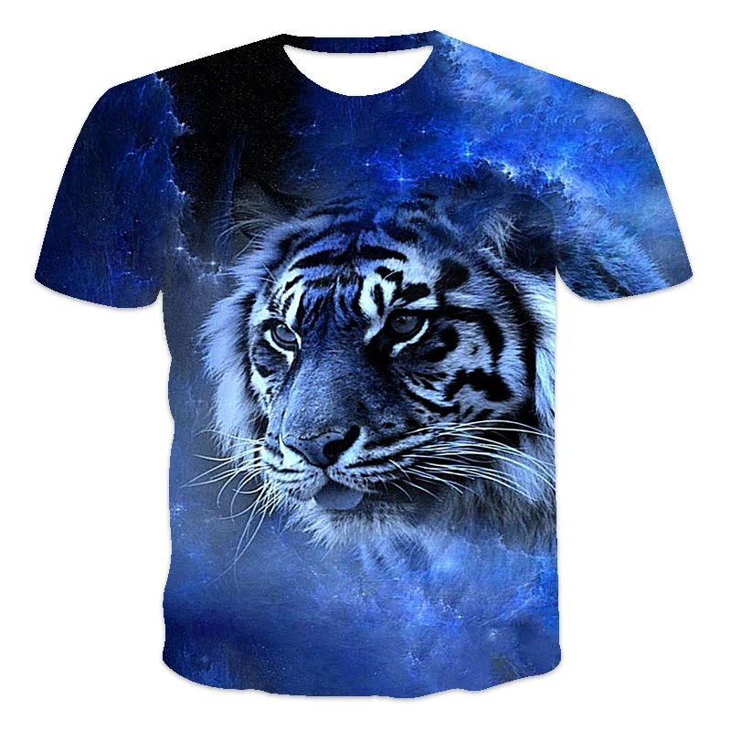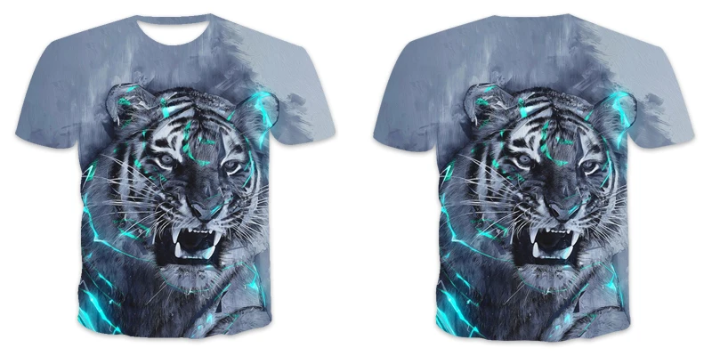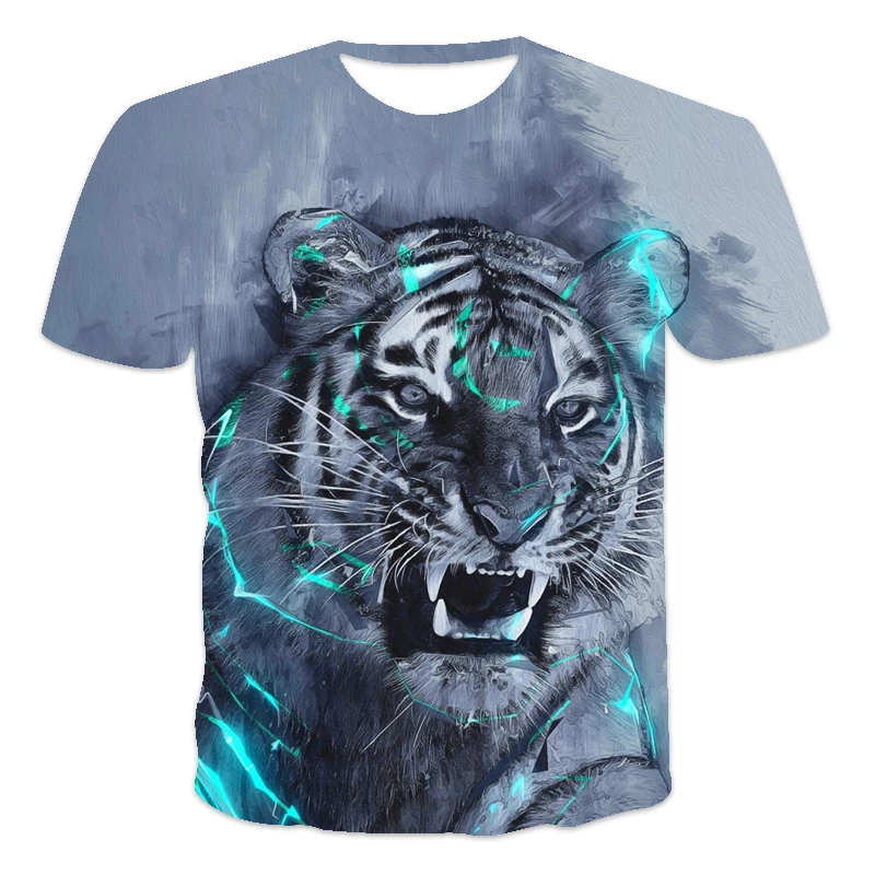 Футболка мужская оверсайз с коротким рукавом, модная рубашка с круглым вырезом, с принтом тигра, быстросохнущая уличная одежда, лето