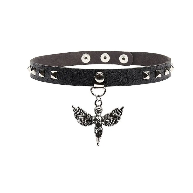 2022 винтажное ожерелье с подвеской-крестом и Ангелом из искусственной кожи в стиле Харадзюку, Женское и мужское панк-готическое черное ожерелье, массивное ожерелье, ювелирные изделия