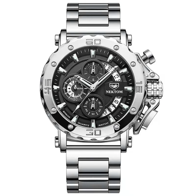 Часы мужские кварцевые NEKTOM, водонепроницаемые, на стальном ремешке