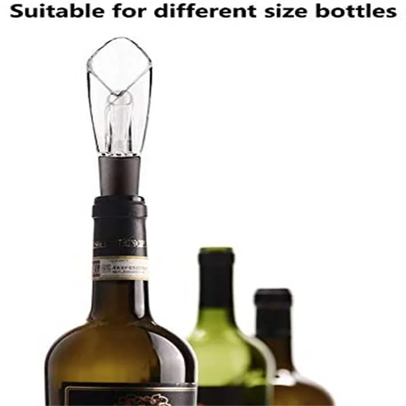 Подходит для винных бутылок разных размеров: уникальное применение инвертированного трапециевидного дизайна позволяет легко вставлять винные бутылки разных размеров. Во время использования, вам нужно только вставить винную паутину вертикально в рот бутылки вина, чтобы залить вино, что является простым и удобным.