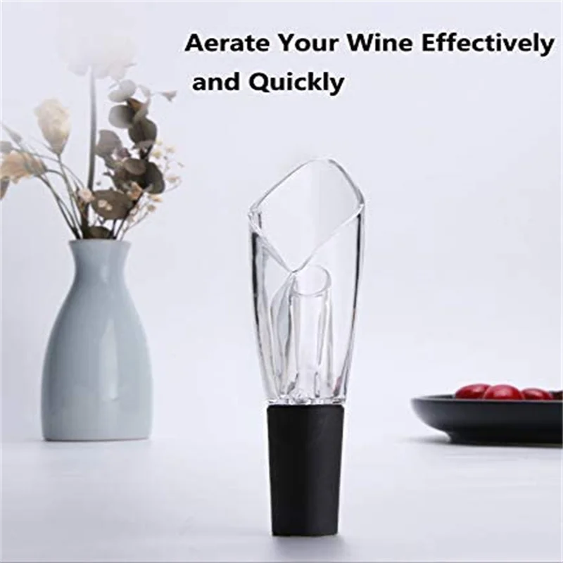 Быстро и эффективно надувайте вино: система забора принимает нужное количество воздуха и смешивает его с вином, вылитым в бокал для вина. Аэратор ускоряет процесс дыхания вина, эффективно и мгновенно освобождает скрытый аромат, аромат вина и аромат.