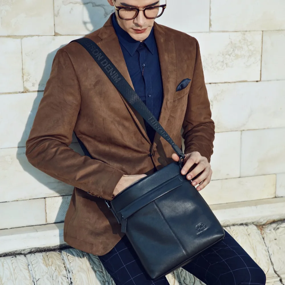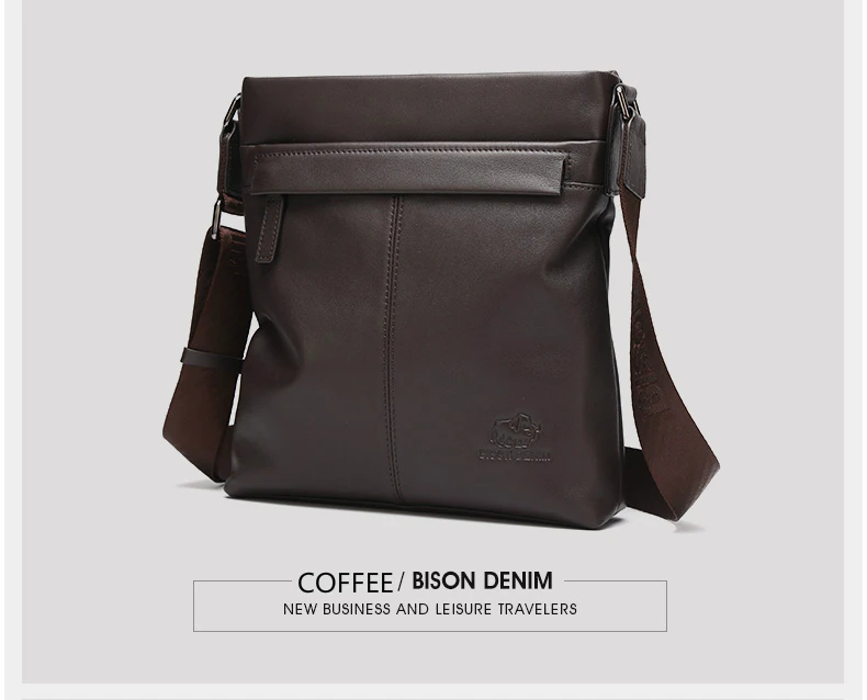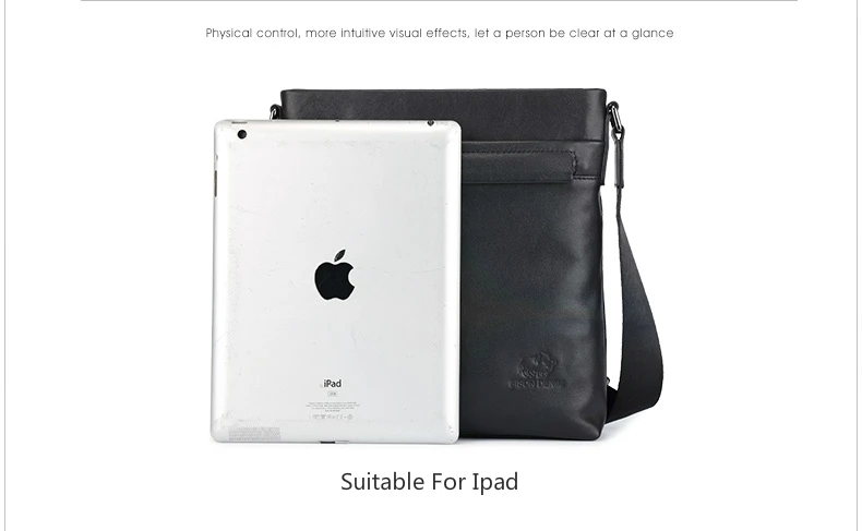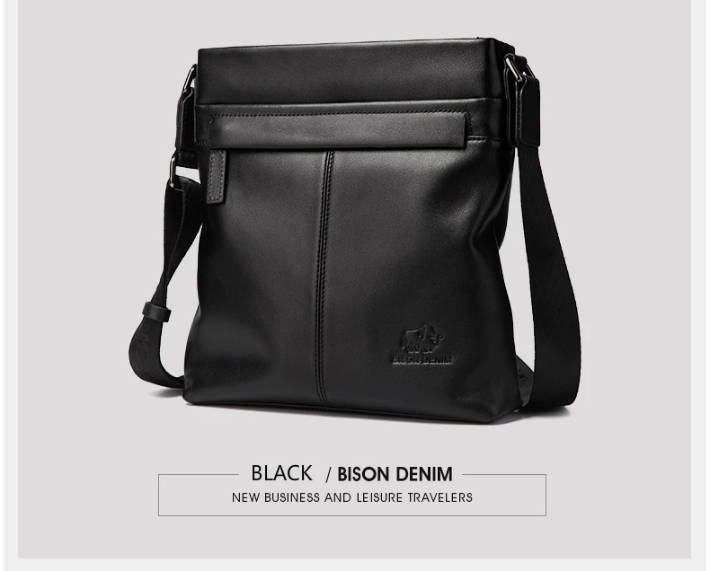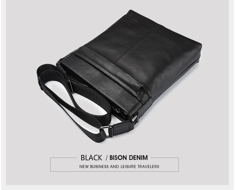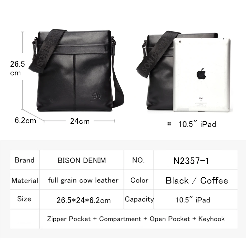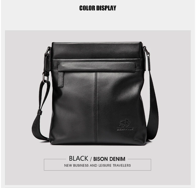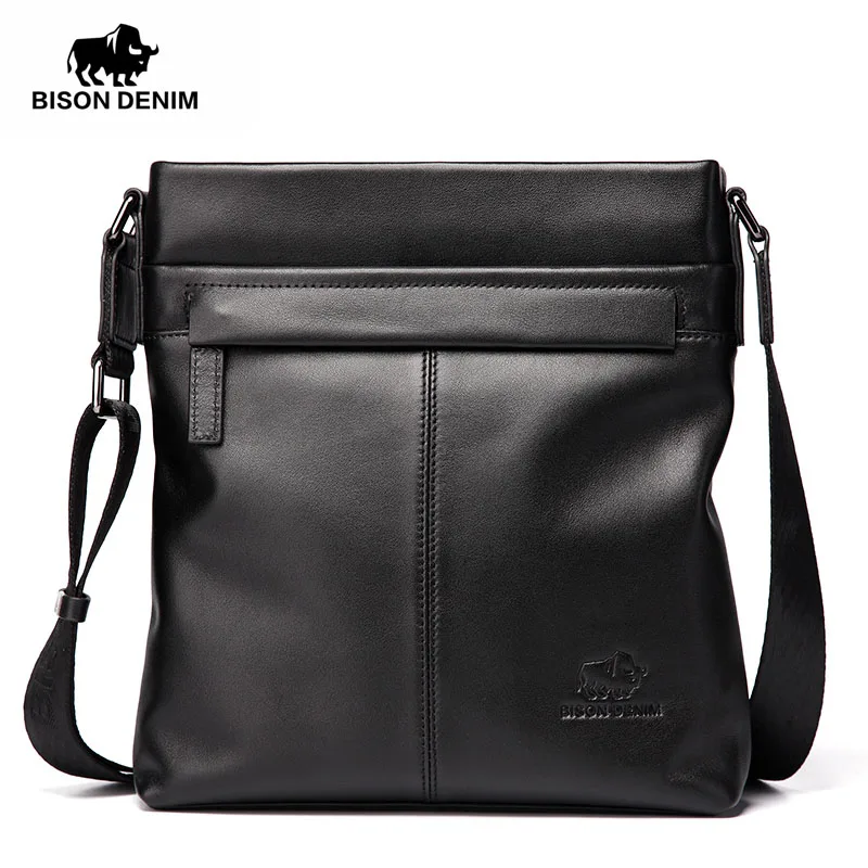 Мужская сумка через плечо BISON DENIM, черная Повседневная Сумка-Кроссбоди из воловьей кожи для Ipad 10,5 дюйма, 2019