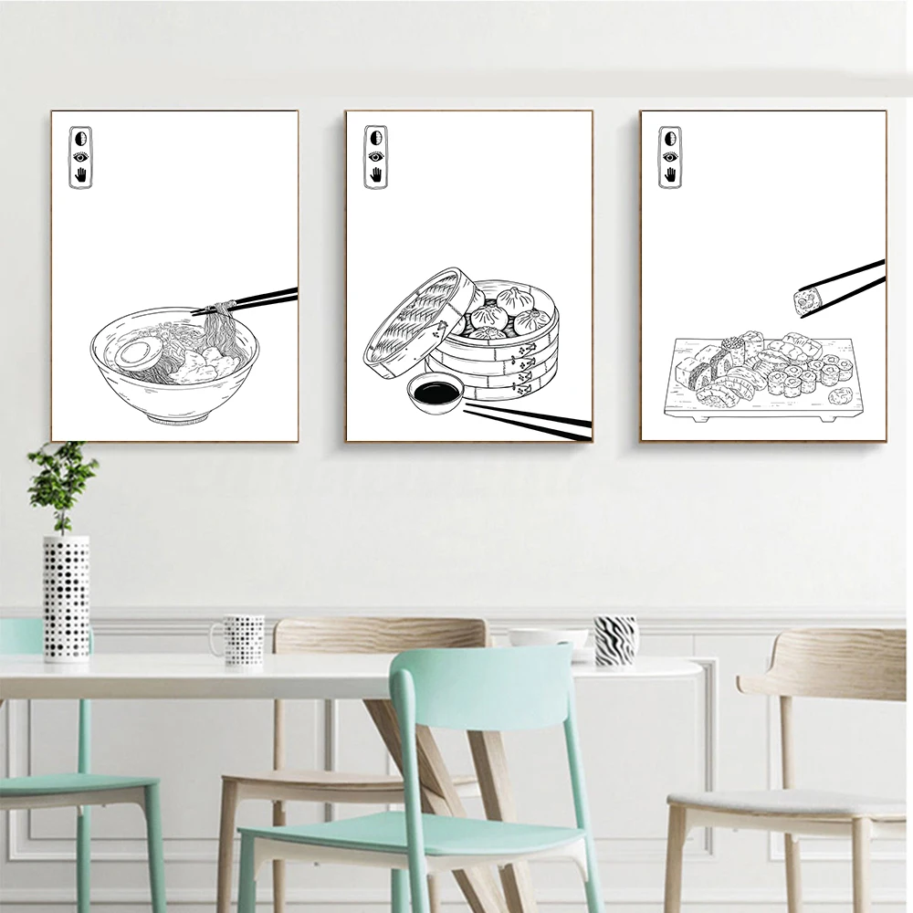 Японская еда, рамен, суши, пельмени, плакат, печать, бонсай, дерево, деньги, растение, настенные картины, искусство, Картина на холсте