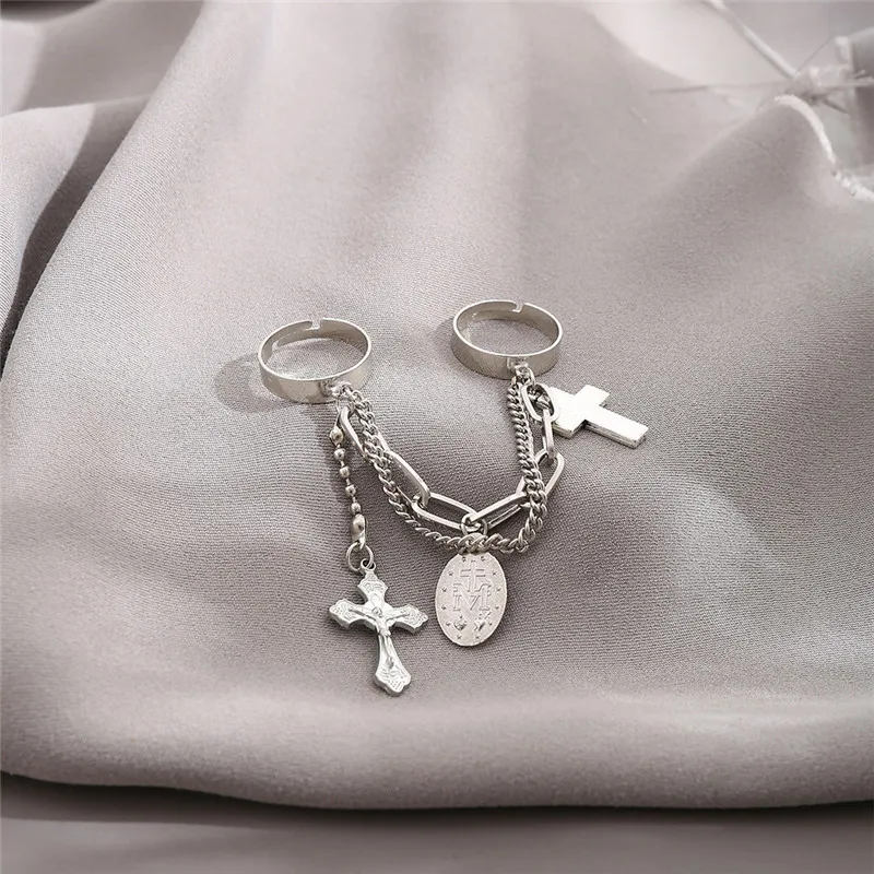 Модное Стильное Простое сочетание колец с цепочкой и крестом в стил...