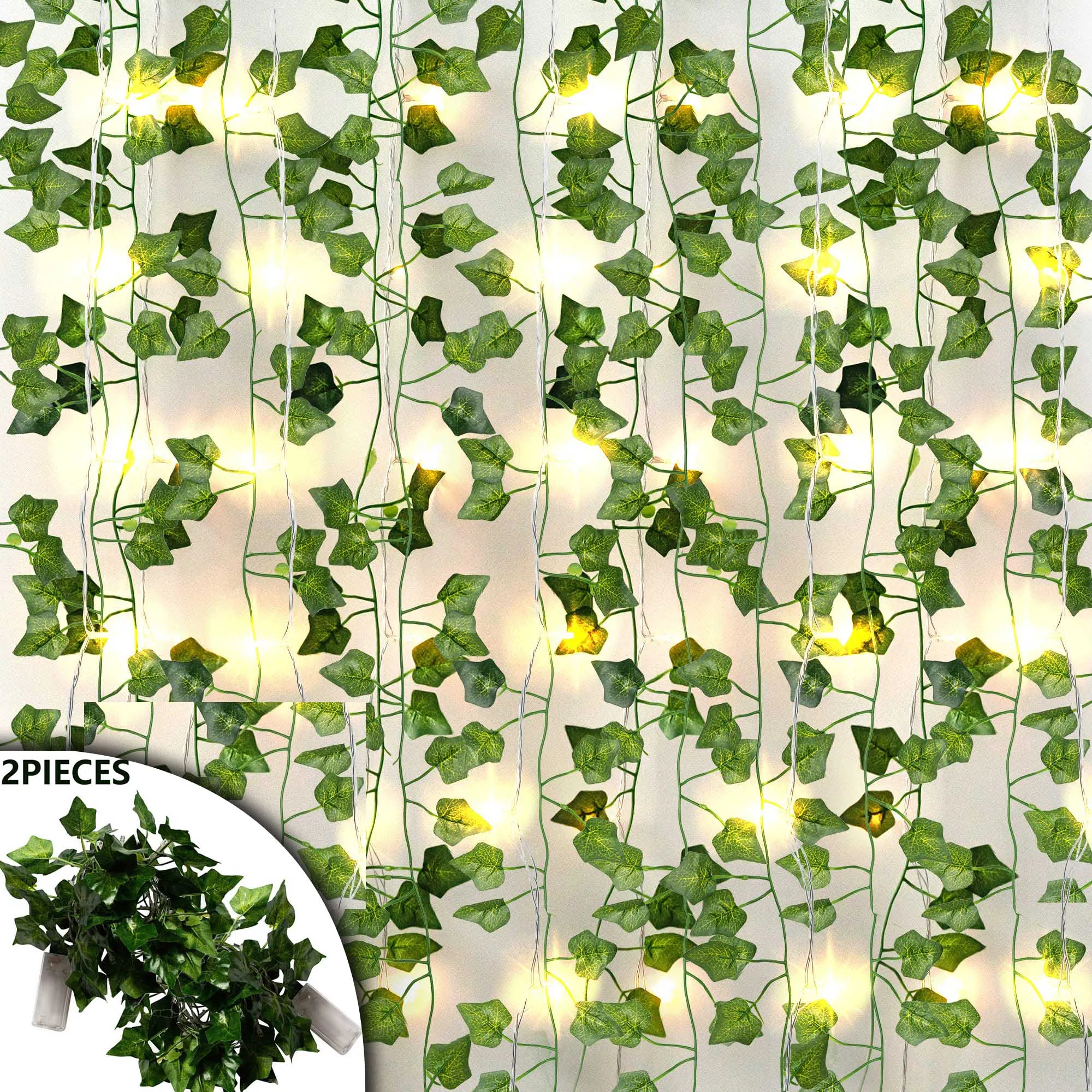 Гирлянда из искусственного плюща, декоративная лампа-лента с зелеными листьями винограда, домашний декор, 2 шт., 20 светодиодный