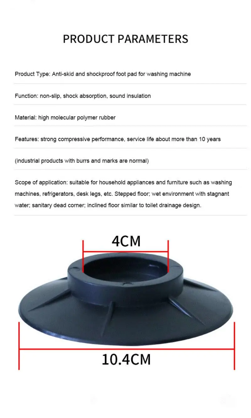 Вакуумная конструкция в нижней части стопы на присоске является водонепроницаемой и нескользящей. Он плотно отсасывает землю. Стиральная машина больше никогда не будет бегать. Обладает амортизацией и амортизацией.
