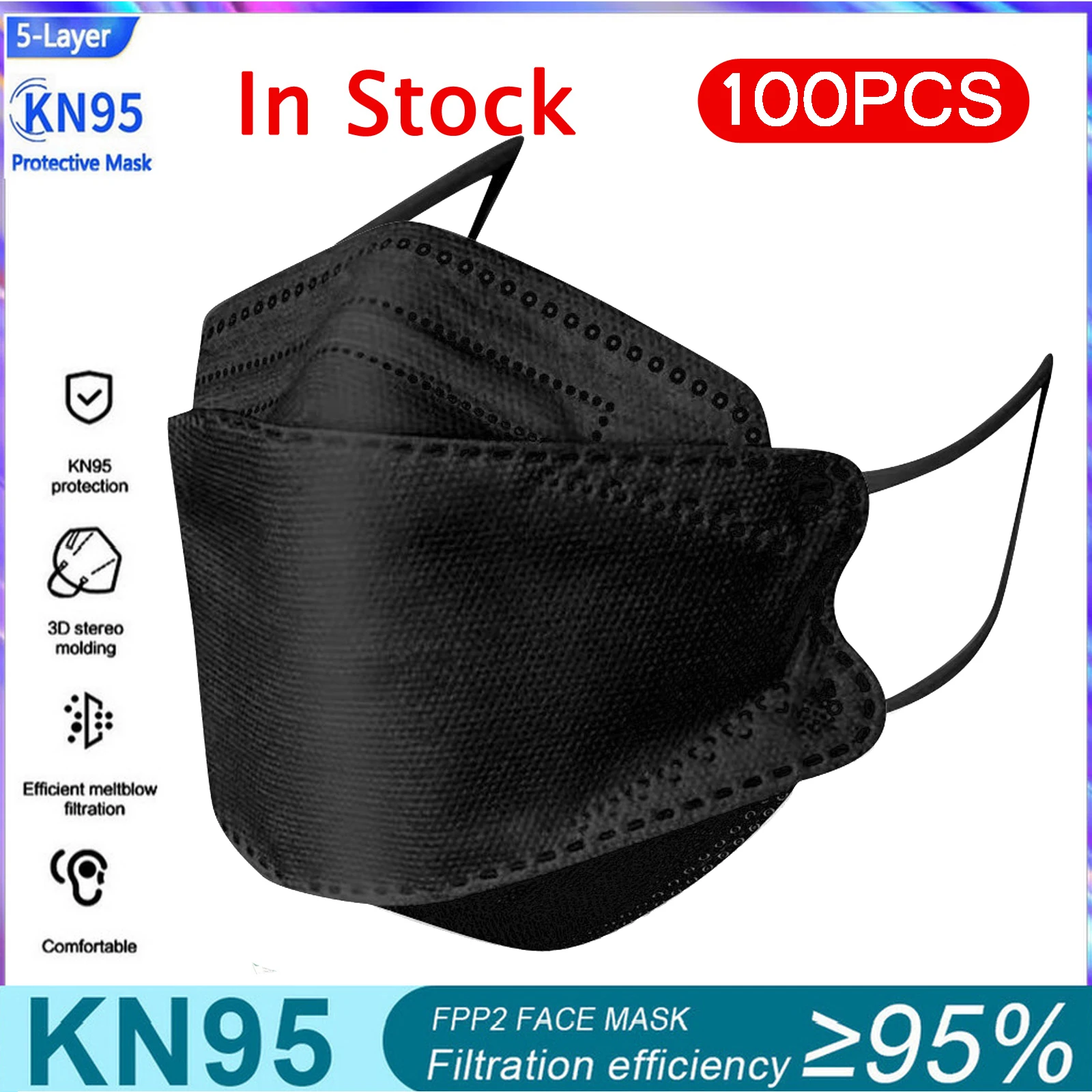 10-100 шт. 3D FPP2 маска Black Kn95 рыбные маски 3-слойная взрослая...