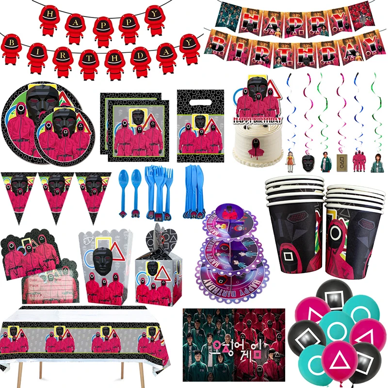 Игра кальмар, украшения для дня рождения, столовая посуда, конфетная коробка, топперы для тортов, шары для будущей мамы, Детские сувениры