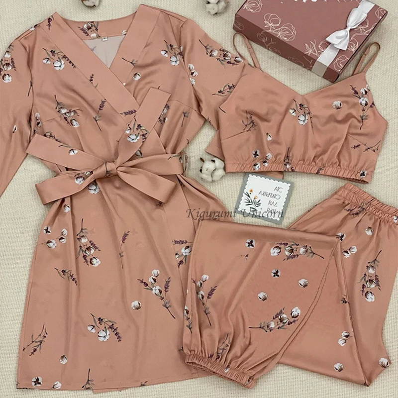 Пикантный комплект свадебного халата с цветочным принтом, шелковая одежда для сна, повседневное интимное нижнее белье, ночная рубашка, мягкая Домашняя одежда, Халат