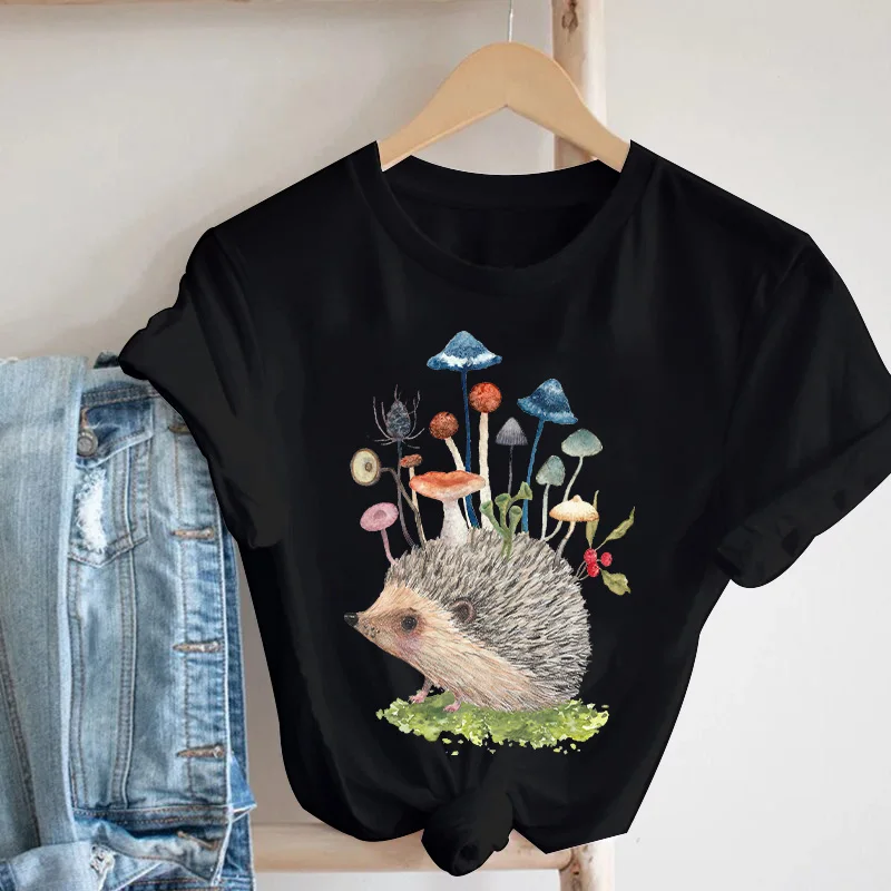 Женская футболка с круглым вырезом, коротким рукавом и принтом Ежик