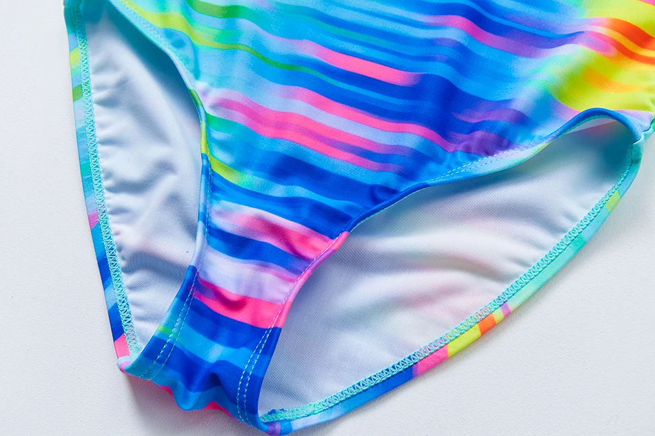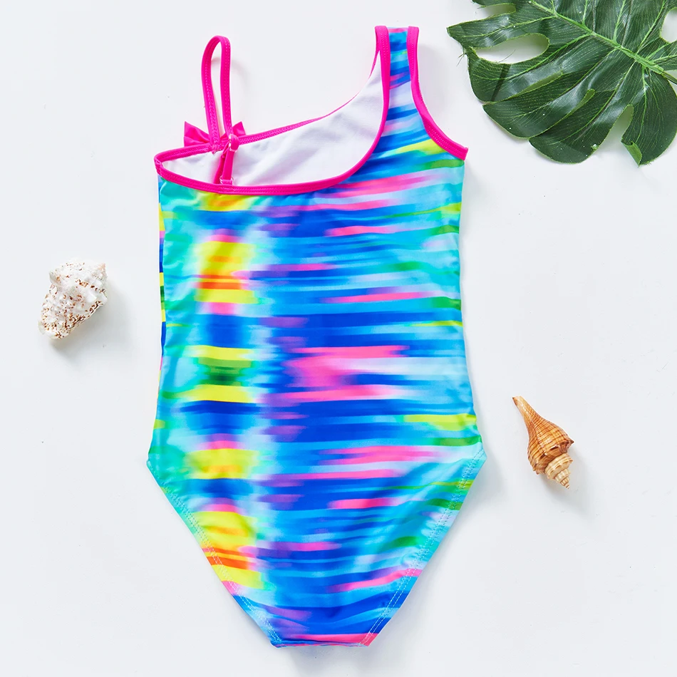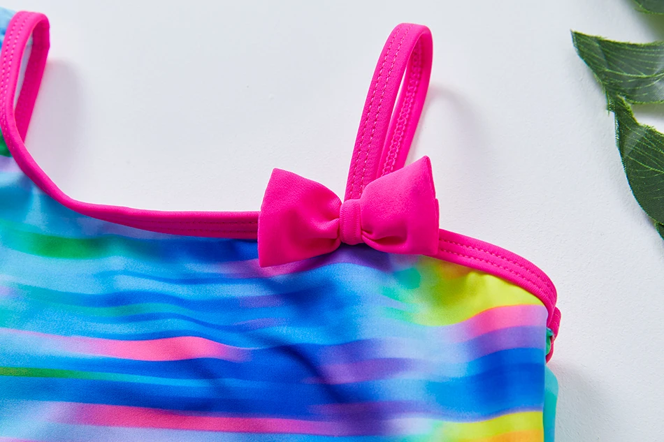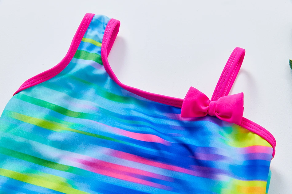 Цельный купальник для девочек-подростков 8-14 лет, модная Стильная летняя пляжная одежда в полоску с бантом, купальники для девочек
