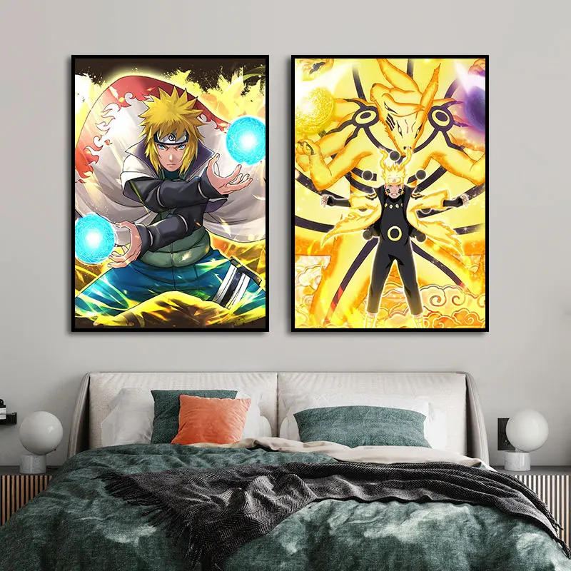 Плакат на стену из аниме Наруто Узумаки и Саске, настенный художественный постер для гонок, печать на холсте, картина для детской комнаты, украшение для дома