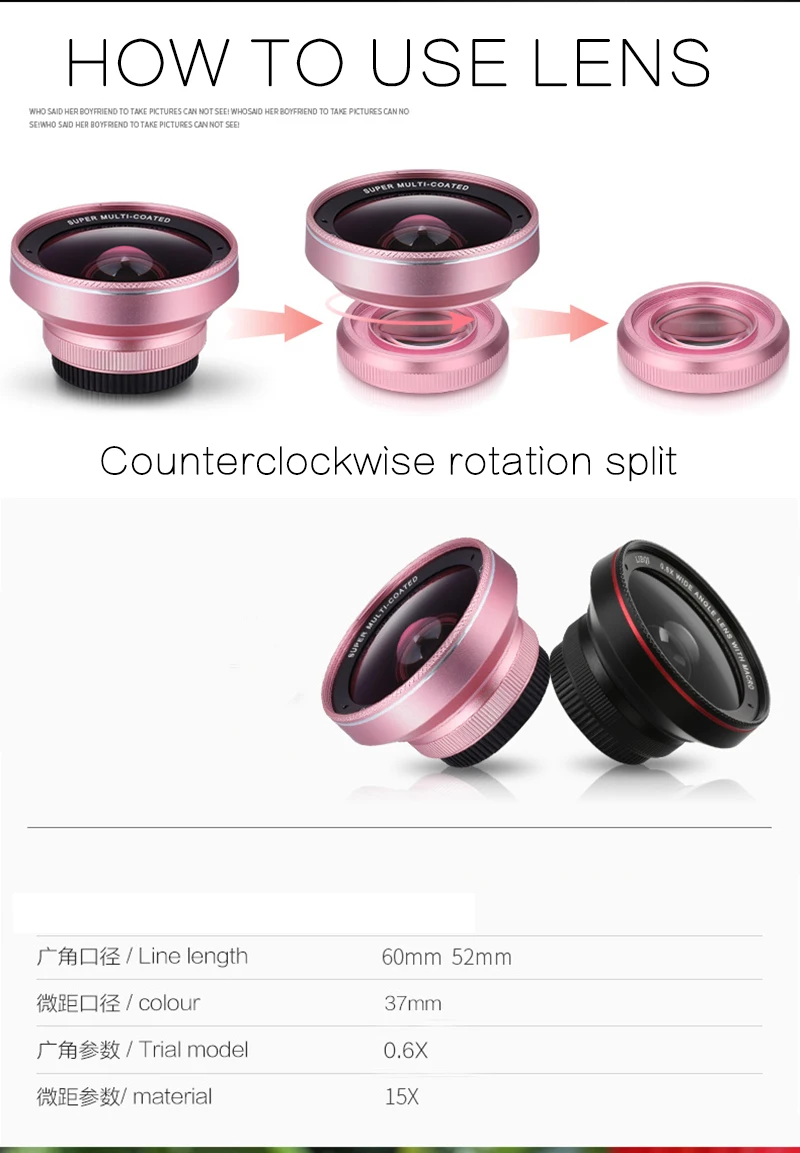 2. 15x макрообъектив высокой четкости с близким расстоянием 3-4 см.