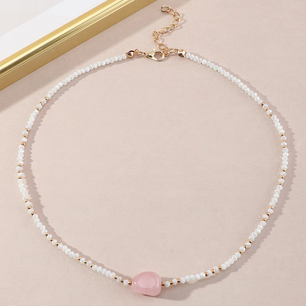 Богемное модное ожерелье ручной работы с бусинами для женщин и девушек элегантное розовое колье простое колье с сердцем ювелирные изделия с цепочкой до ключиц