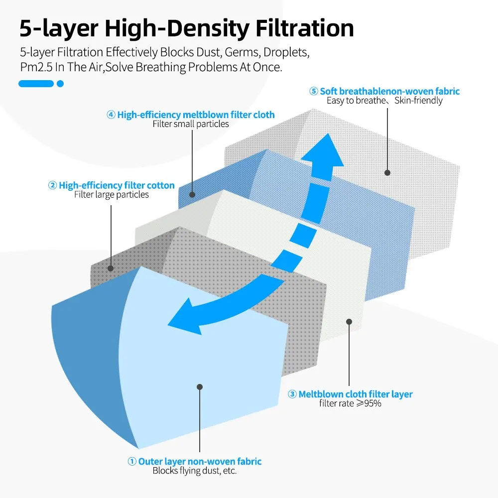 Респиратор FFP2 для взрослых, 5 слоев, с сертификатом KN95