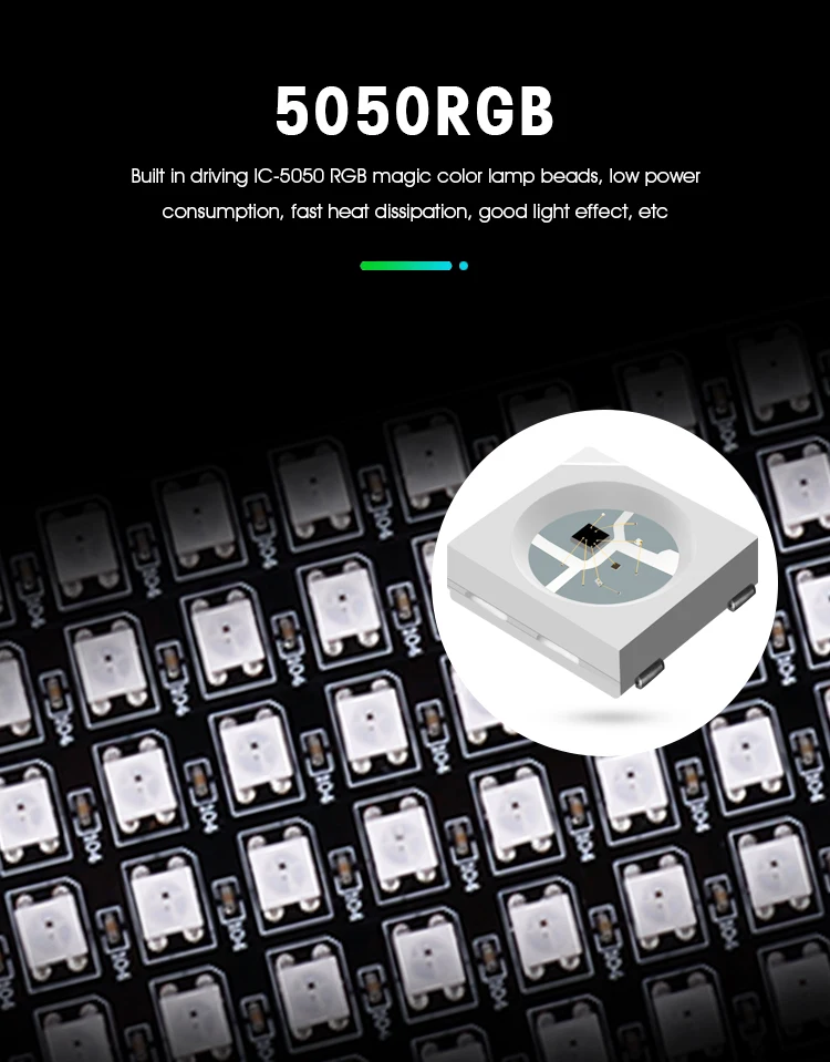 1. Каждый светодиод SMD5050 RGB имеет вставленный IC, поддерживающий множество эффектов изменения цвета.