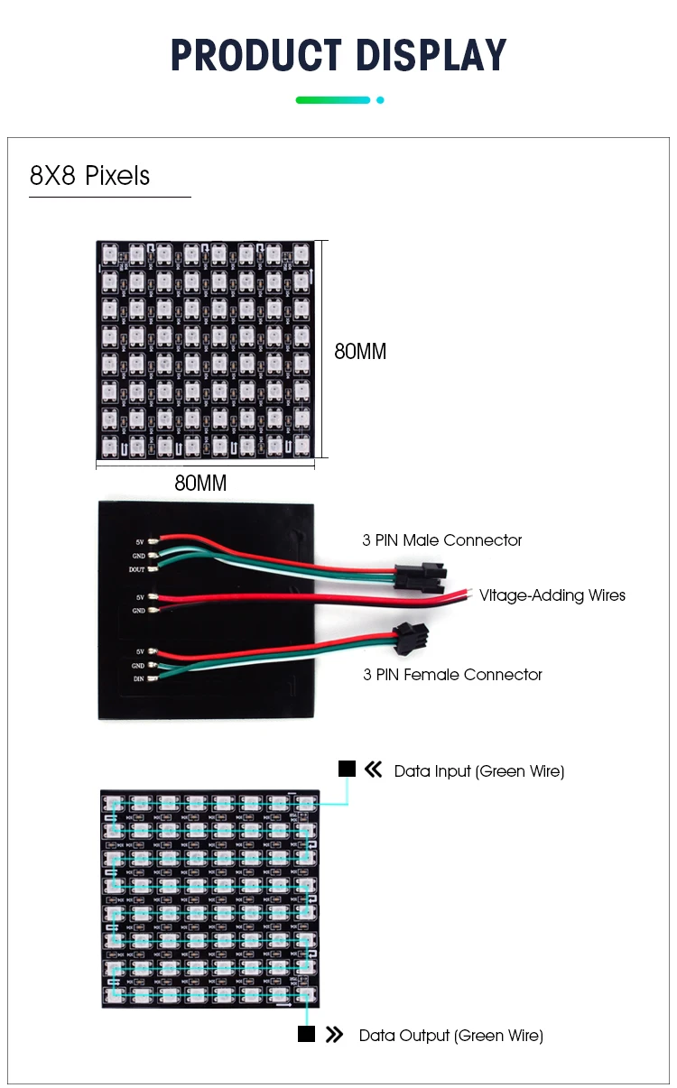7. Широкая совместимость и применение: он отлично работает и совместим с Arduino, Raspberry Pi, FastLED library, Rainbowduino, SP103E, SP105E, K1000C,T1000S и т. д. Его можно использовать для изготовления СВЕТОДИОДНЫХ экранов, светодиодных стенок, рекламных досок и отелей, КТВ, баров, наружных рекламных знаков, рождественских или свадебных Вечерние Декорации и т. д.