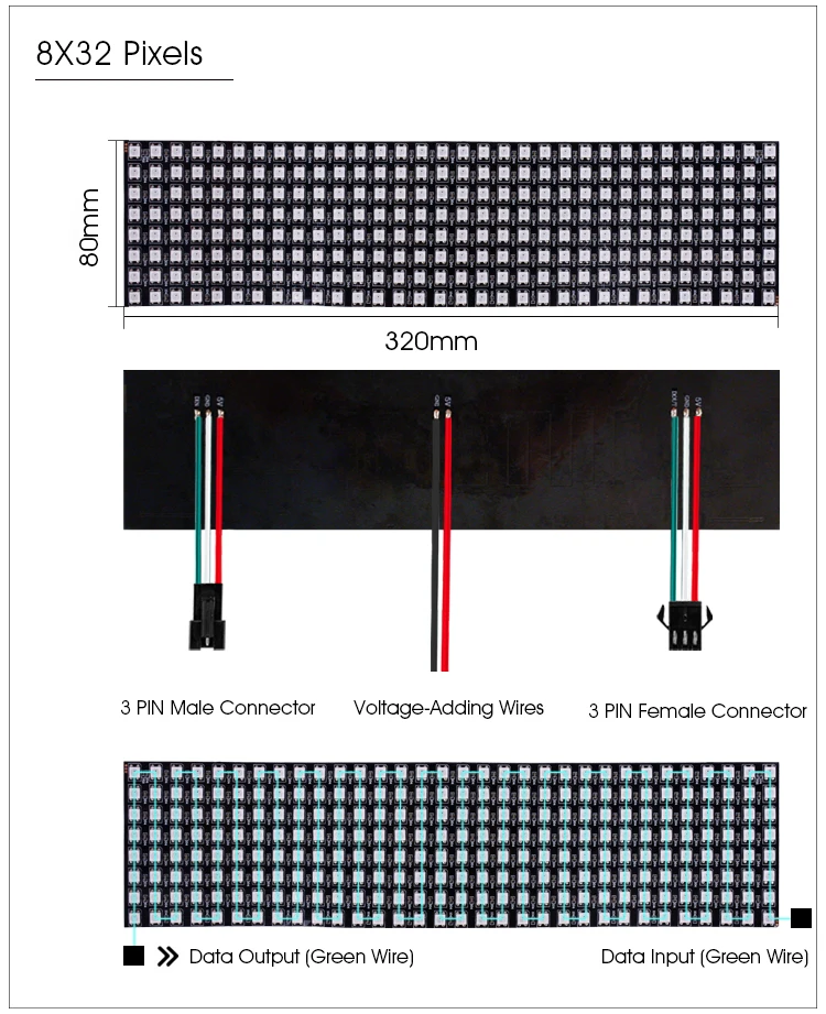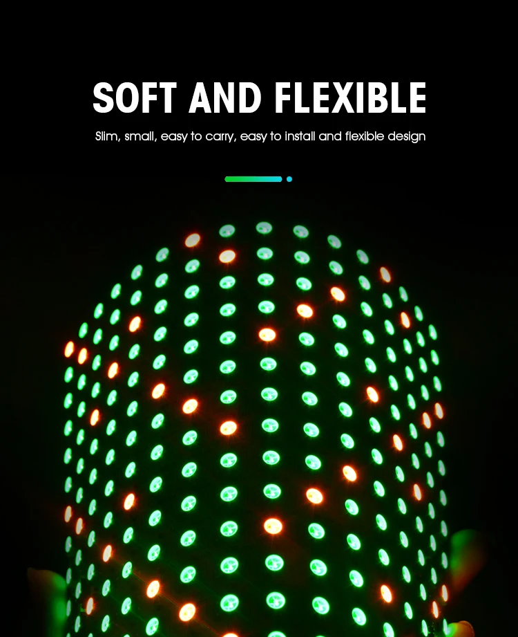 8. Цепная и гибкая, вы можете расширить панель, подключив их один за другим с 3-контактными разъемами JST. Гибкий FPCB может быть мягко Согнут и изогнут вокруг поверхностей.