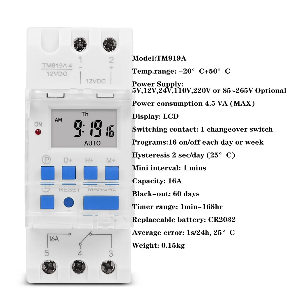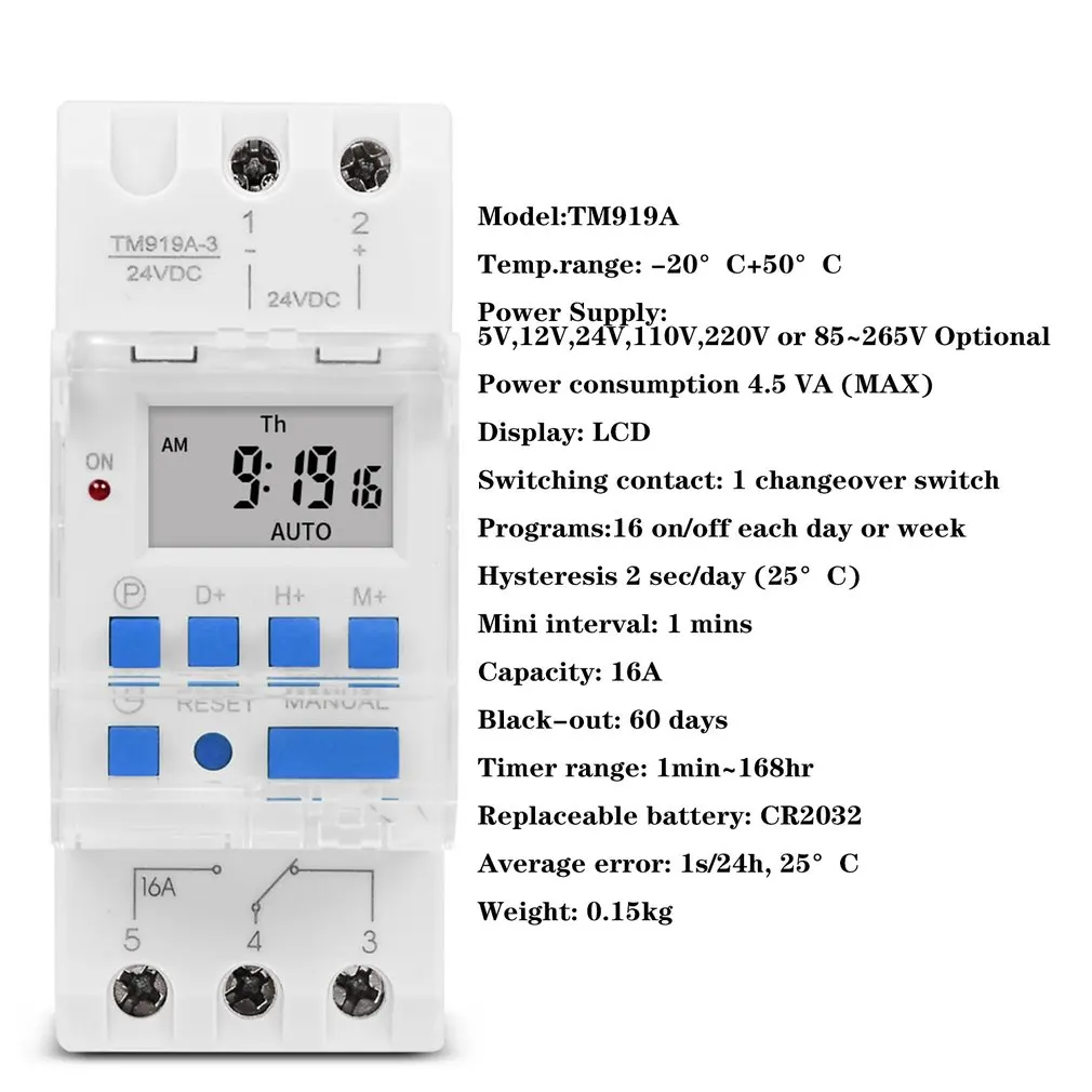 16 А монтажный электронный 7-дневный программируемый цифровой промышленный таймер на DIN-рейку, реле управления таймером