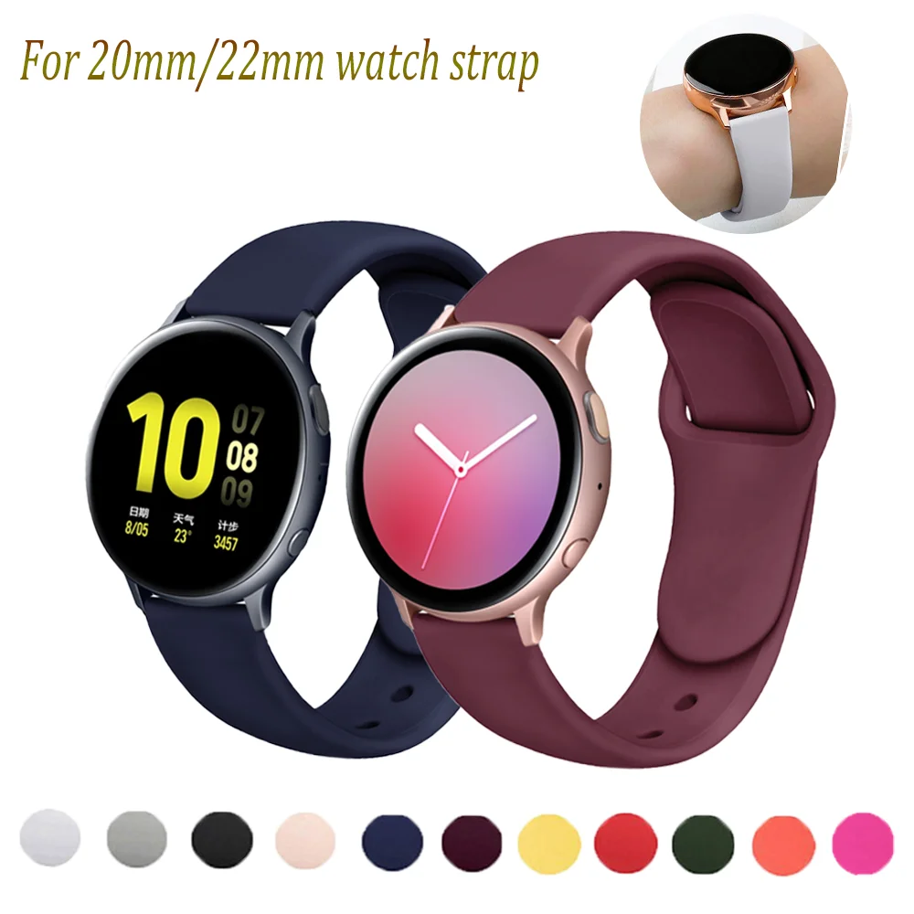 Ремешок силиконовый для Samsung Active 2, браслет для часов 2022 мм 44 мм 42 мм46 мм Gear S3 amazfit GTSGTR Huawei wtach GT 22epro