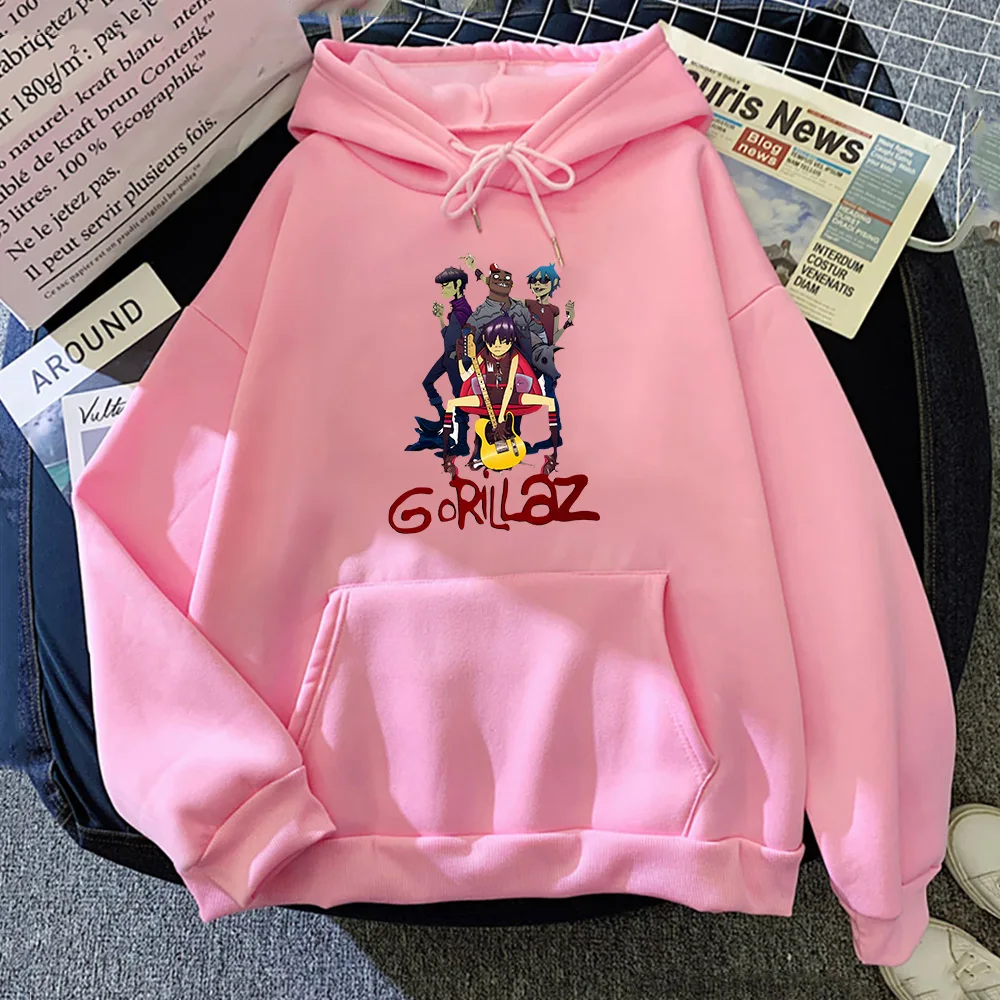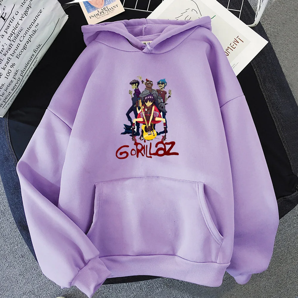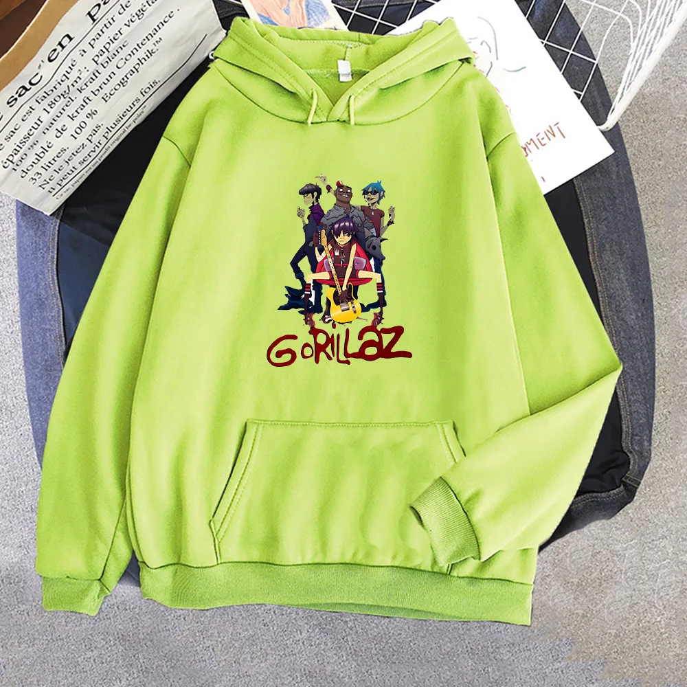 Худи Gorillaz с принтом музыкальной группы, уличная одежда для мужчин и женщин, модные толстовки большого размера с капюшоном, толстовка в стиле хип-хоп, пуловер