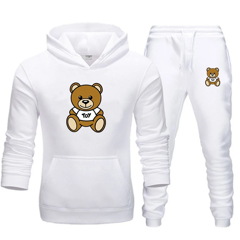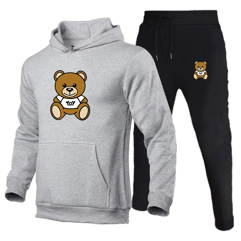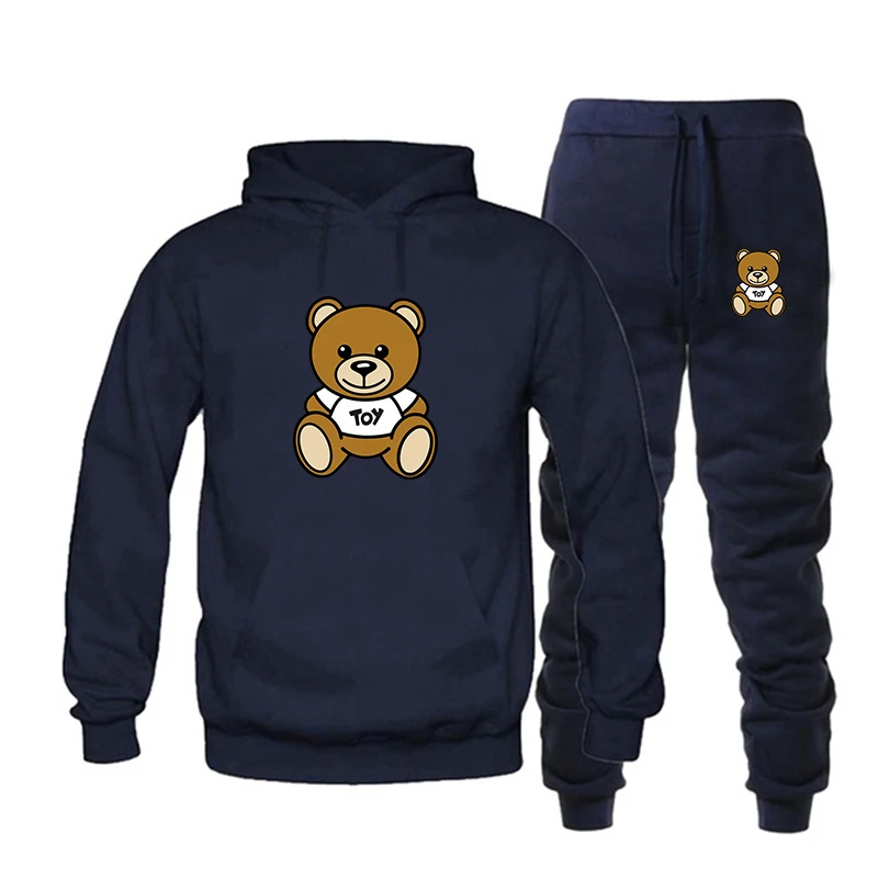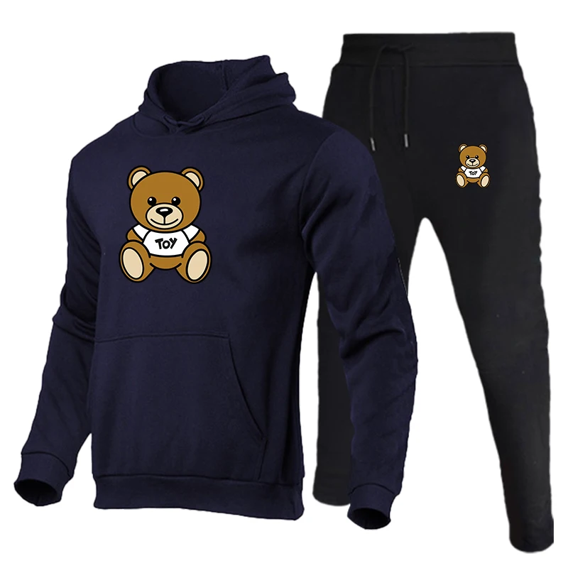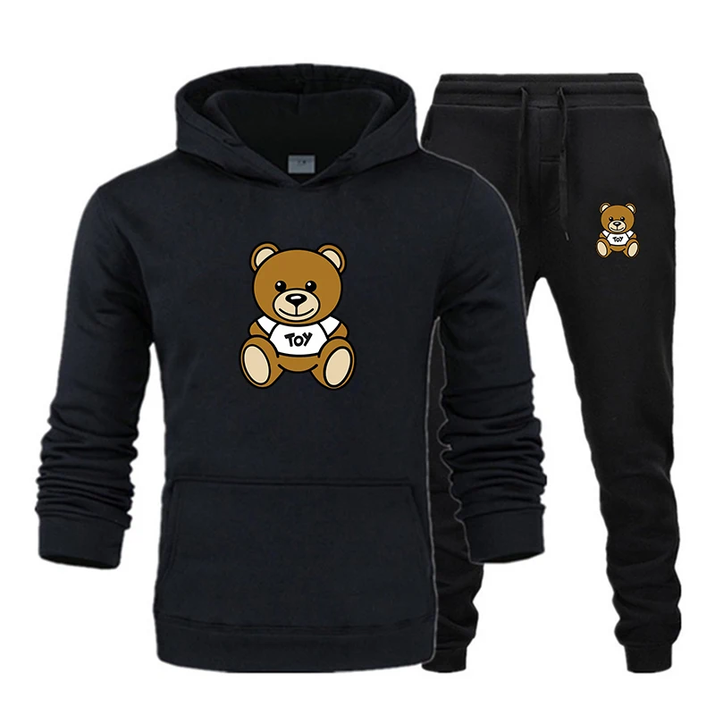 Мужские спортивные костюмы с мультяшным принтом медведя, толстовка с длинными рукавами и брюки для пар, костюм для бега на весну и осень, однотонный комплект для любителей игры в гольф