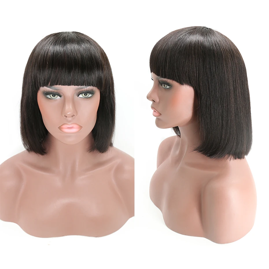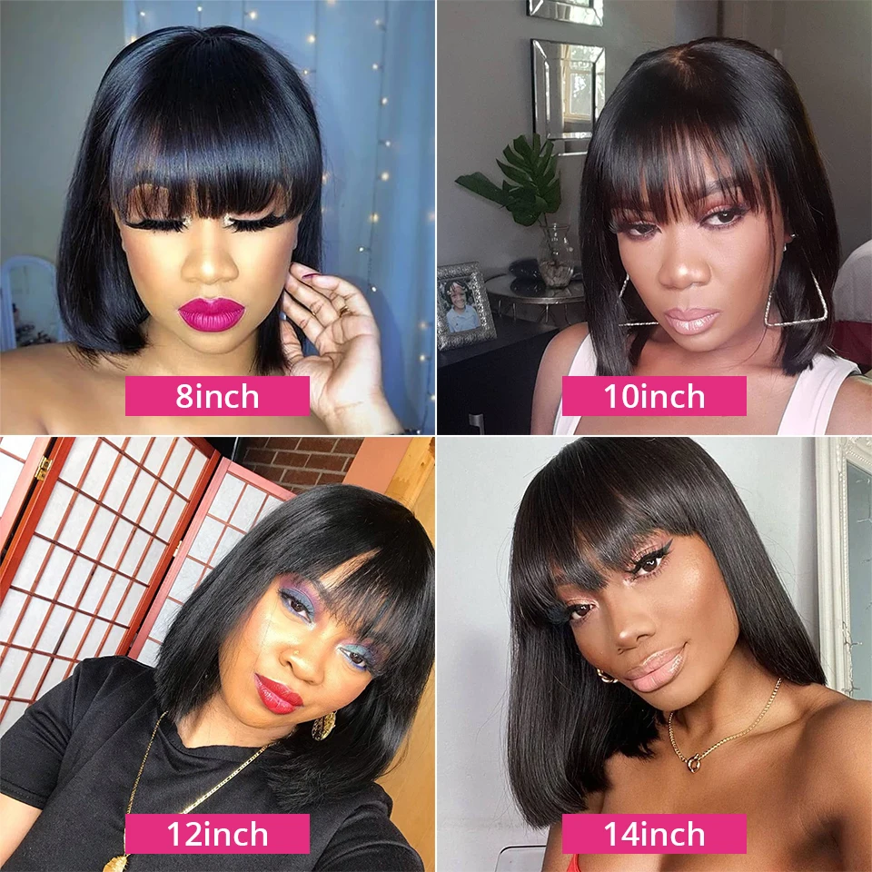 Прямые парики из человеческих волос с челкой, короткие бразильские человеческие волосы, парики из человеческих волос машинной работы, парики для женщин, без шнуровки
