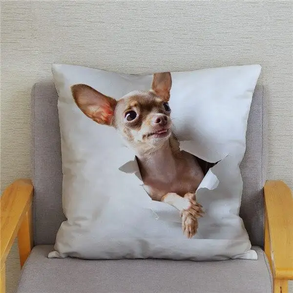 Симпатичная мини-подушка с принтом чихуахуа, наволочка для подушки, обнимающая подушка, чехол для дивана, домашний декор, наволочка для подушки