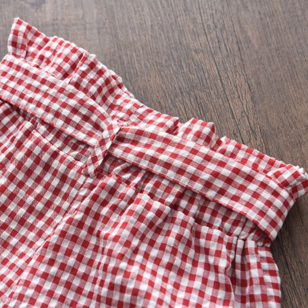 Bear Leaderкомплекты одежды для маленьких девочек новые модные Лоскутные футболки + клетчатые шорты с бантом Повседневная одежда Комплекты одежды для маленьких детей