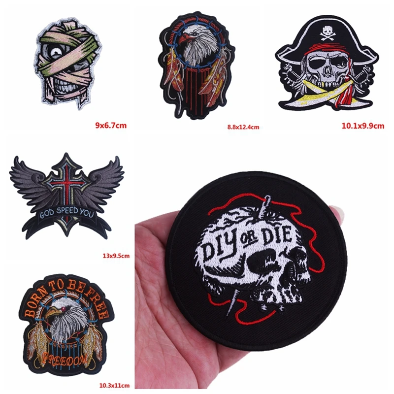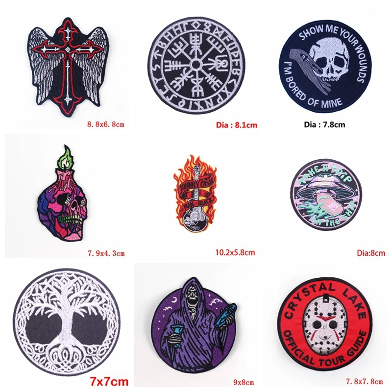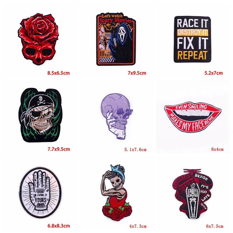 Prajna 10 шт. оптовая продажа Значки для фильма ужасов железные на заплатках для одежды термоклейкие нашивки Панк Череп Наклейки на одежду