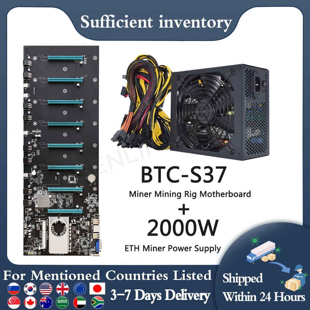 Добывающая материнская плата ETH BTC S37 D37 T37, 8 GPU, основная плата с ЦП, криптовалют, BTC, резервная добывающая плата, добывающая плата с блоком питания 2000 Вт