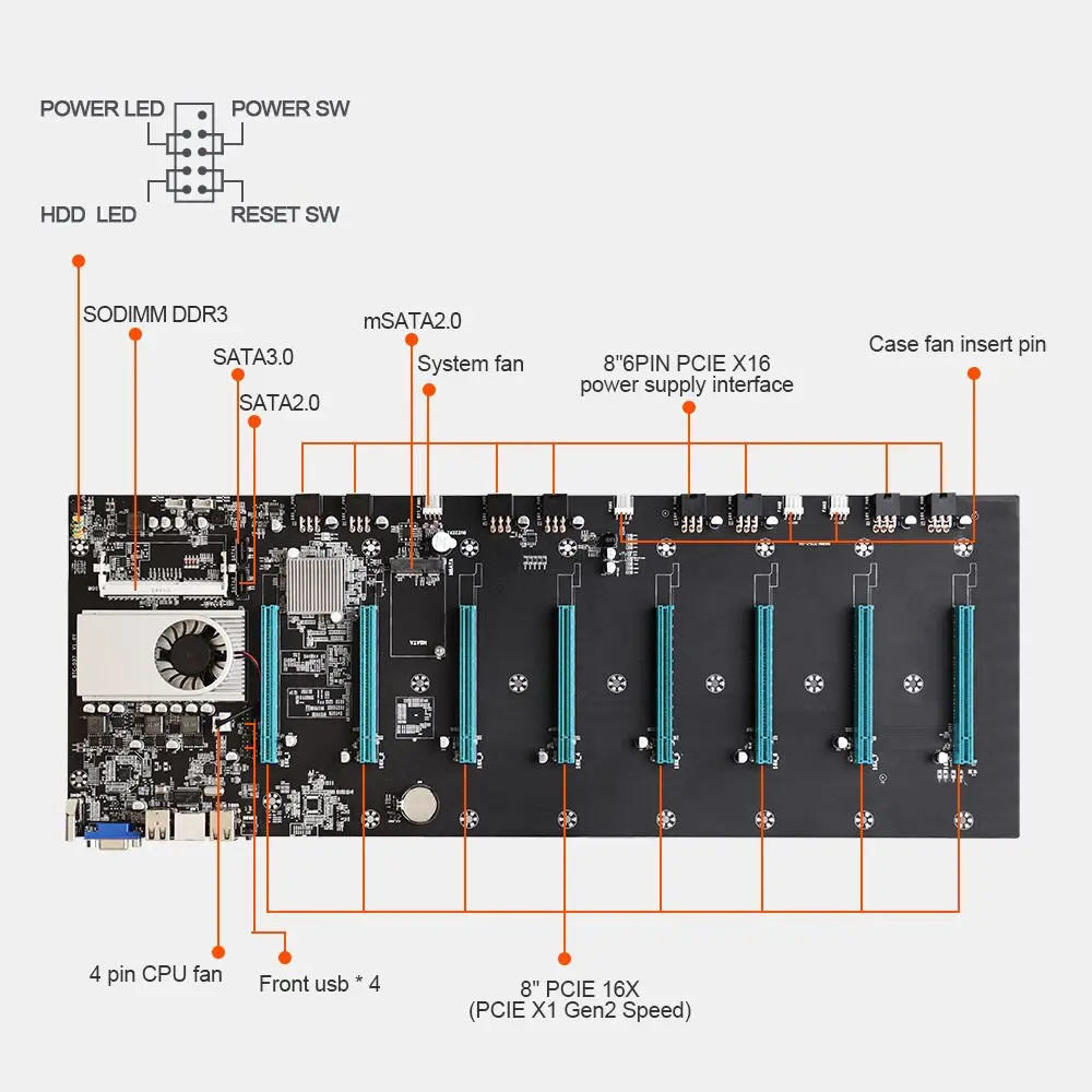 Материнская плата для майнинга, 8 PCIE 16X, видеокарта SODIMM DDR3 ...