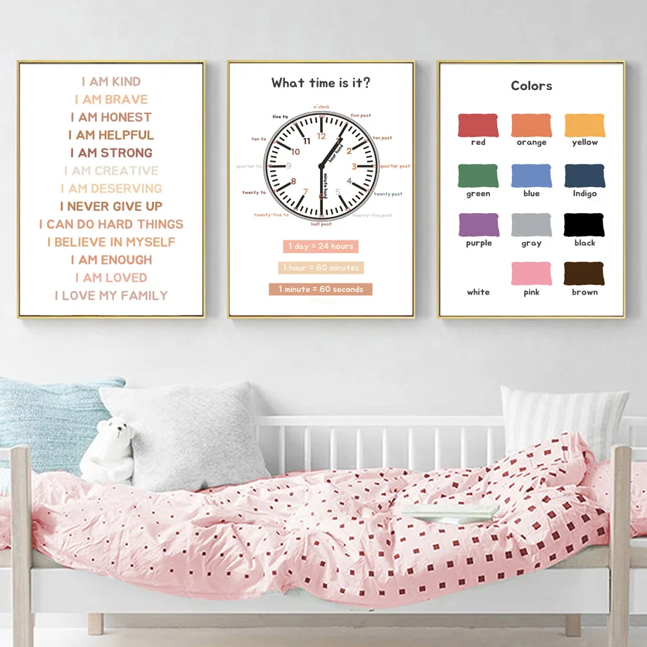 Мультфильм Дети образования цифры ABC буквы скандинавские стены искусства холст живопись плакаты печать фотографии гостиной Декор для детской комнаты