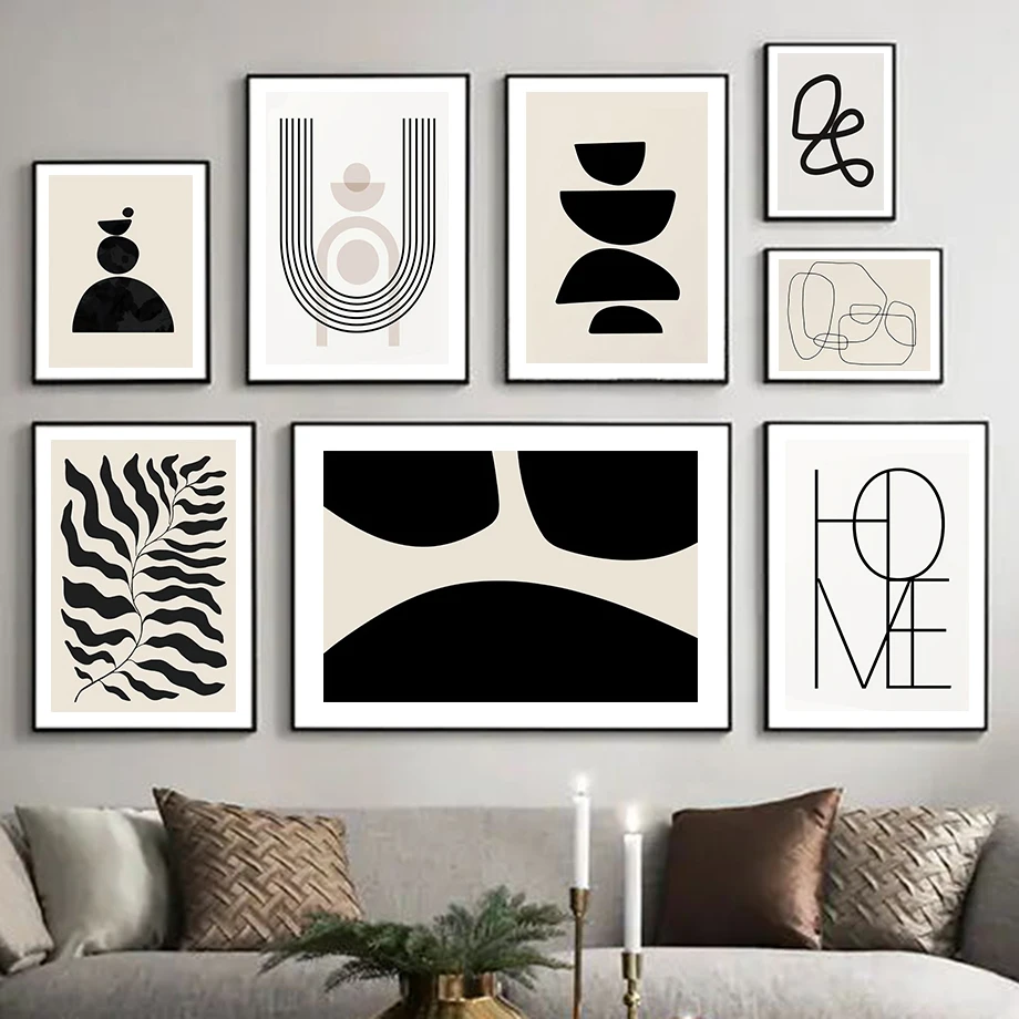 Черно-белая Минималистичная Геометрическая линия абстрактная настенная Картина на холсте скандинавские постеры и принты настенные картины декор для гостиной