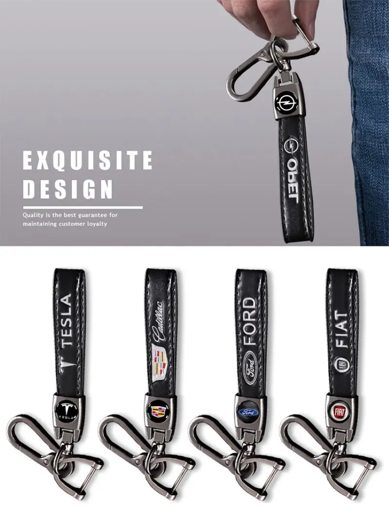 Брелок со стальной пряжкой с логотипом автомобиля, кожаный брелок д...