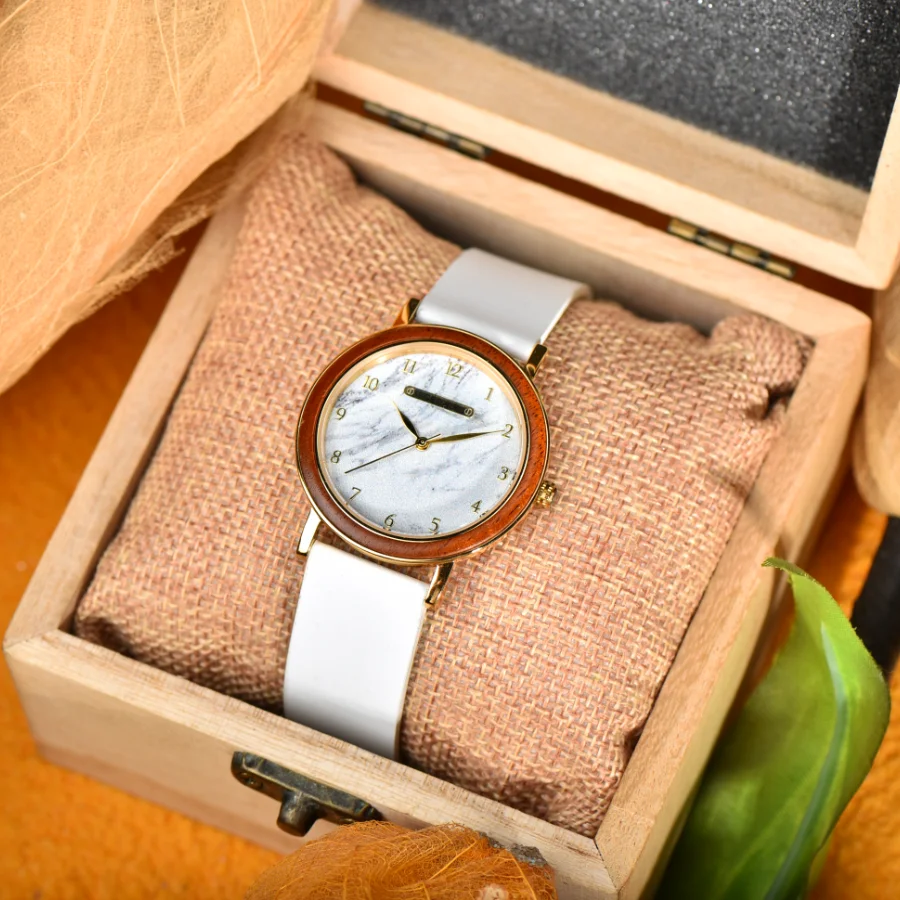 Часы женские кварцевые ультратонкие из нержавеющей стали с деревянным ремешком