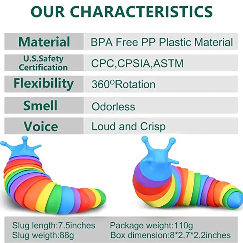 Fidget Toy Slug шарнирная Гибкая 3D игрушка-Слизень для всех возрастов, облегчение, анти-тревога, сенсорные игрушки, рождественский подарок для детей