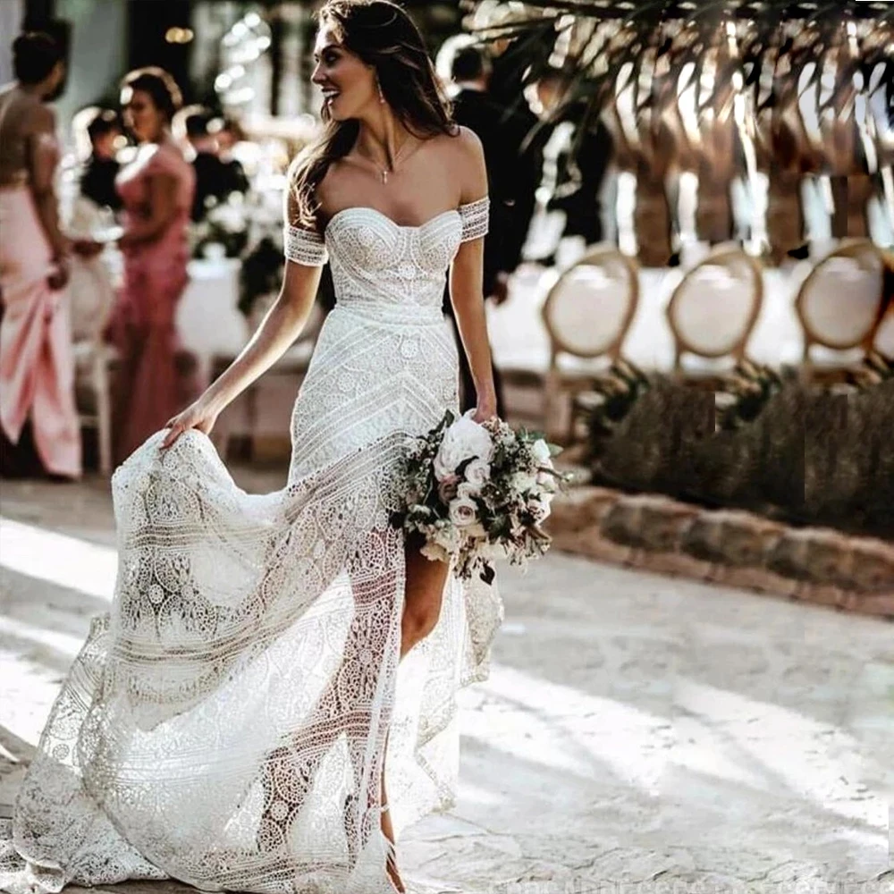 Очаровательное кружевное свадебное платье королевы Бохо С 2022 рукавами...US $95,00